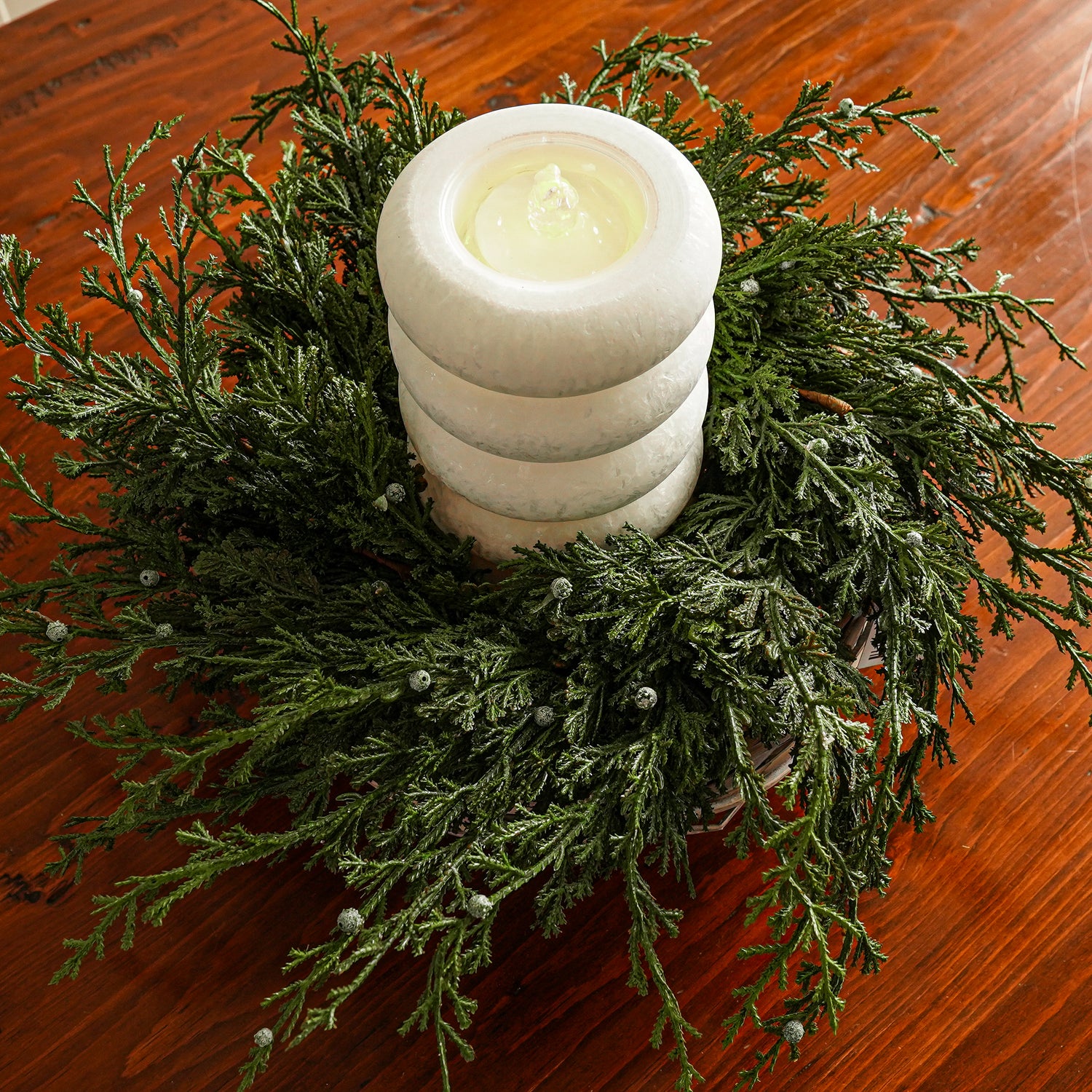 Add a touch of winter elegance with the Juniper and Berry Small Wreath. Designed with lifelike greenery, this faux wreath features realistic juniper sprigs and soft berries for a natural yet refined look. Its compact size makes it perfect for tabletops, cabinet doors, or smaller spaces in need of festive charm.