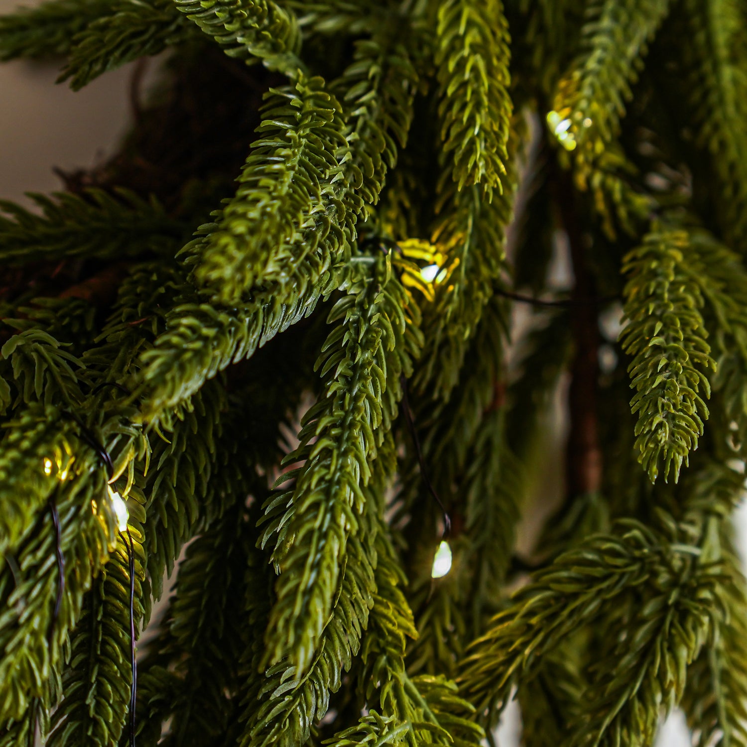 Bring timeless charm to your holiday décor with our LED Real Touch Norfolk Pine Wreath. Crafted with lifelike pine needles that mimic the natural texture and softness of fresh greenery, this wreath offers a warm, welcoming glow through delicate built-in LED lights. Each branch is wired for effortless shaping, creating a full, natural silhouette that feels freshly gathered. Its classic beauty makes it a versatile piece that transitions seamlessly from festive gatherings to year-round greenery accents.
