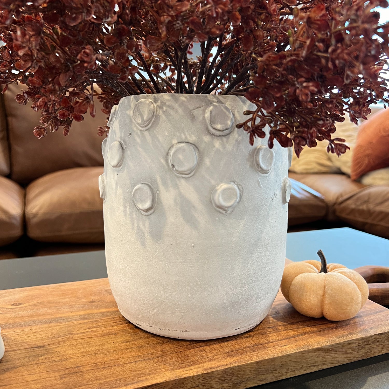 Modern and playful, the Ari Ceramic Vase adds a touch of texture and charm to your décor. Its soft gray finish and raised circle detailing make it a standout piece whether styled solo or filled with seasonal stems. A versatile accent that blends seamlessly into both modern and cozy home settings.