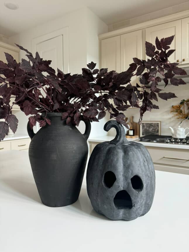 Pair with candles, faux stems, or metallic accents to enhance the dramatic look. Its bold finish makes it versatile for both spooky displays and sophisticated fall vignettes.