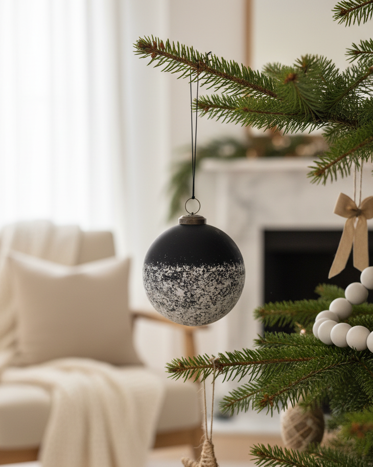 Add a modern, sophisticated touch to your holiday décor with our Black & White Frosted Ornament. Featuring a smooth matte black base paired with a textured white finish, this 5.5" ornament blends striking contrast with refined detail. Perfect for trees, garlands, or decorative bowls, it brings a fresh, elevated look to both classic and contemporary holiday styling.