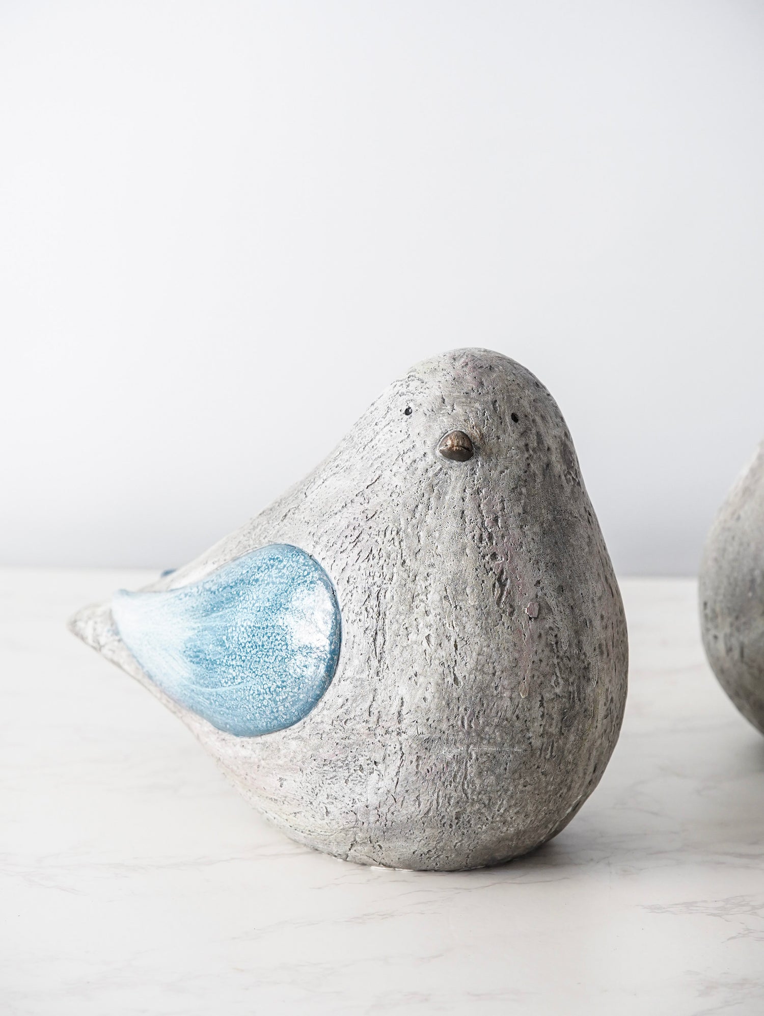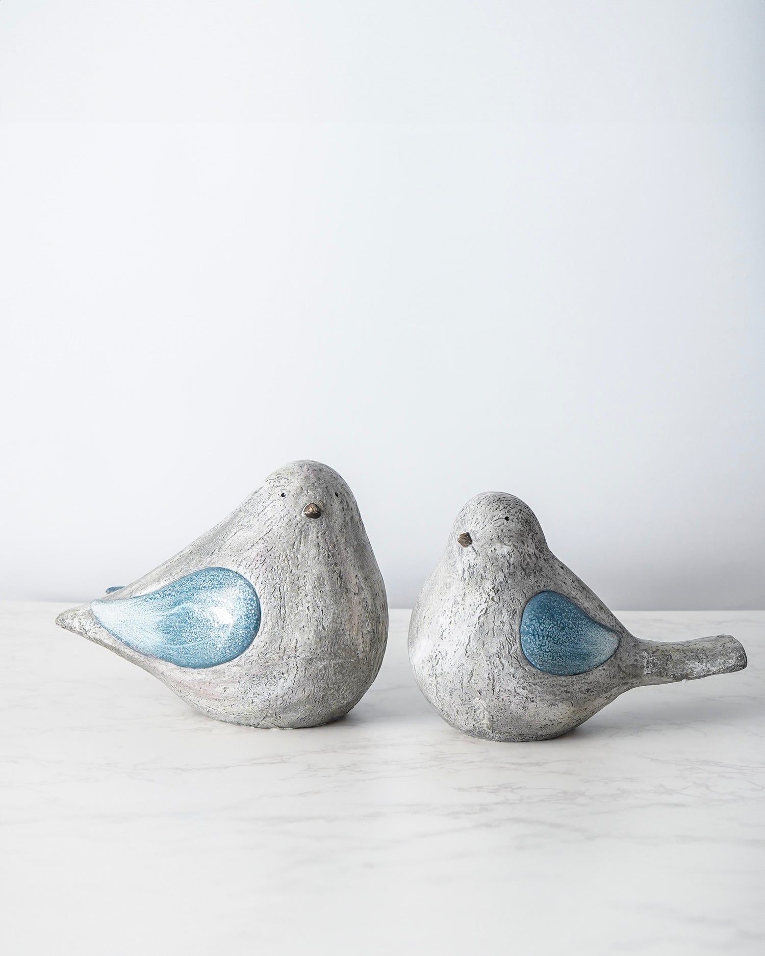 The Blue Bird Set brings a touch of storybook charm and quiet character to your home with its sculptural form and softly weathered finish. Crafted from resin with a cement-inspired texture, each bird features soft blue wings with subtle hints of red that add gentle depth and personality. Their timeless design makes them easy to style on shelves, mantels, or tabletops for a collected, curated feel. Both decorative and meaningful, these birds add warmth and visual interest to any space.