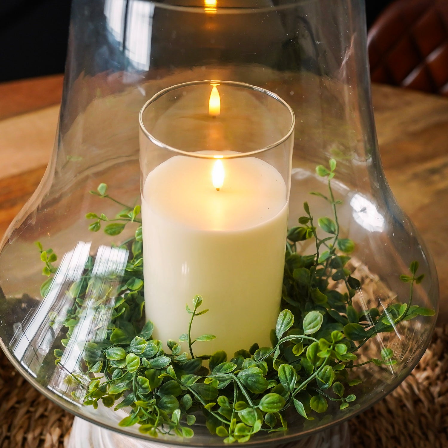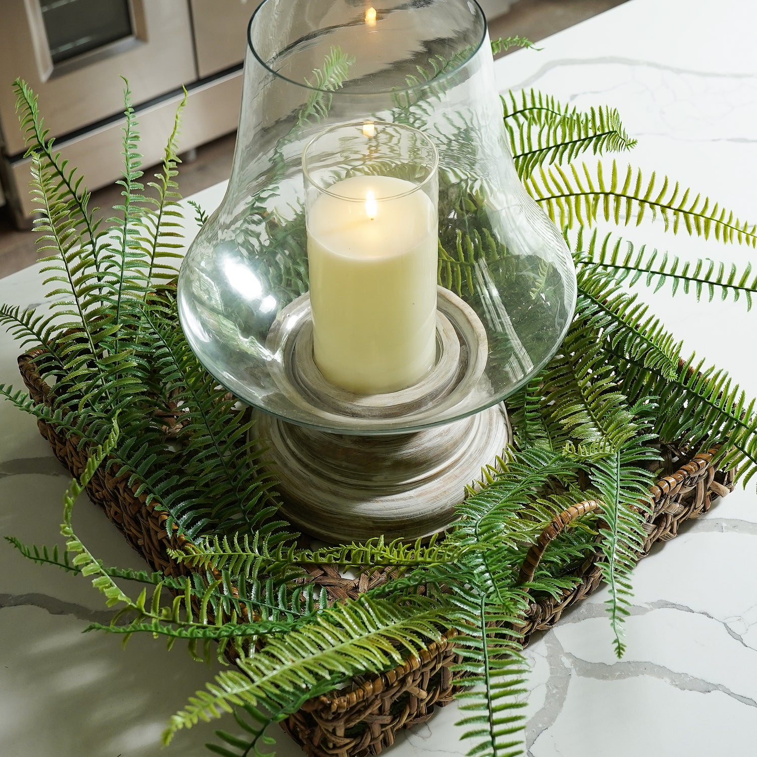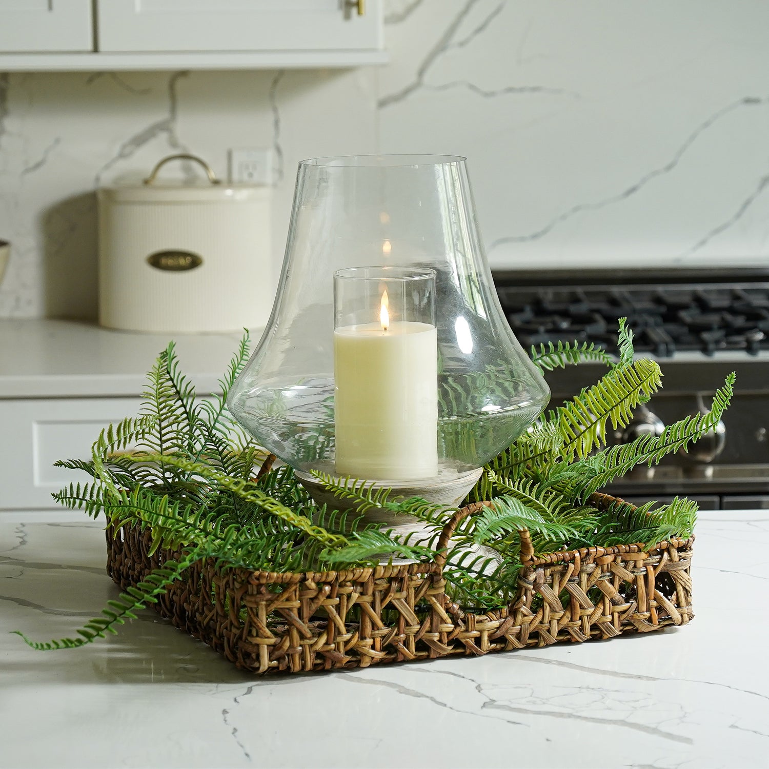 Elevate your home decor with our Camilla Glass and Wood Hurricane. Crafted with hand blown glass, this epic piece will surely catch the eye of all your guests. Make it the center piece of your living space and bring a touch of elegance to any room.
