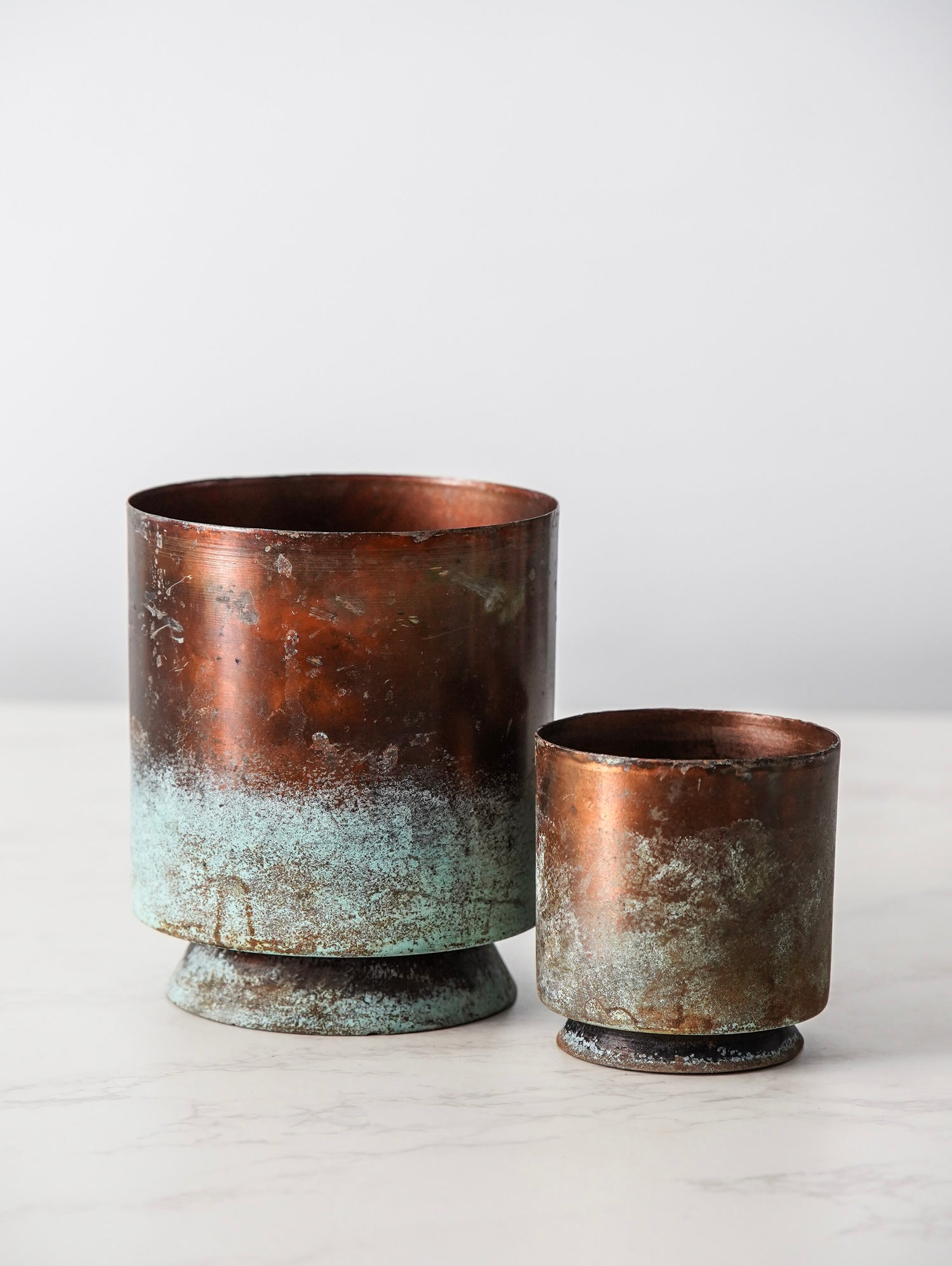 The Copper Planter Set brings rich texture and artisan character to your plant styling with its layered finish and timeless shape. Crafted from iron with a beautifully textured surface, each planter features a blend of warm copper and soft blue tones that create depth and visual interest. Perfect for housing small plants or styling as decorative accents, these pieces add warmth and dimension to shelves, consoles, or tabletops. Designed to feel collected and versatile, they offer an effortless way to elevate everyday greenery.