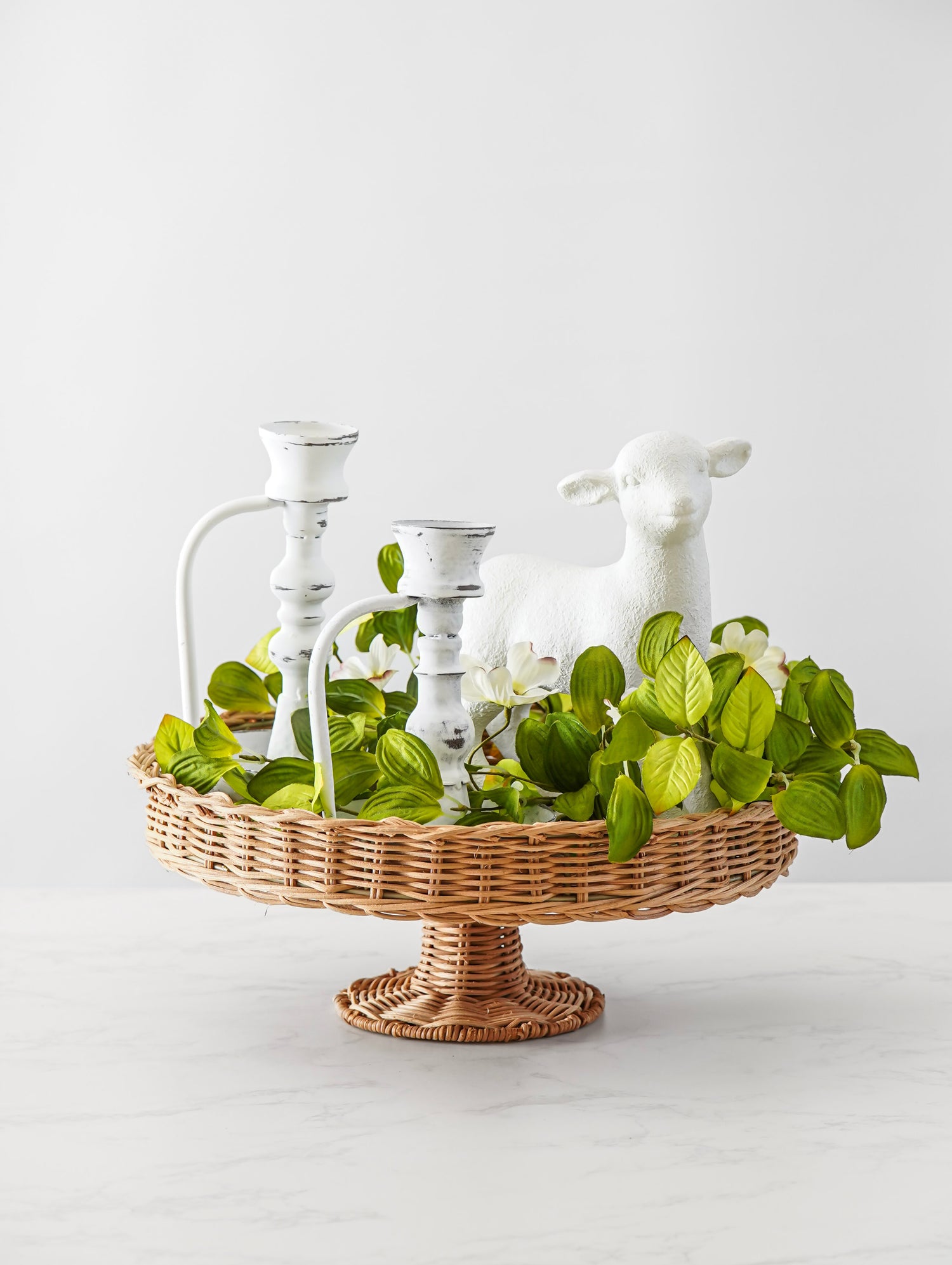 Add a soft, botanical layer to your styling with our Dogwood Floral Candle Ring. Designed with delicate white five-petal blooms and vibrant green foliage, this piece brings a light, airy feel to tablescapes, mantels, and shelves. The grapevine-style base gives it a natural, gathered look that feels timeless and effortless. Perfect from spring through early fall, it beautifully frames candles or small vases for an elevated, floral-forward accent.