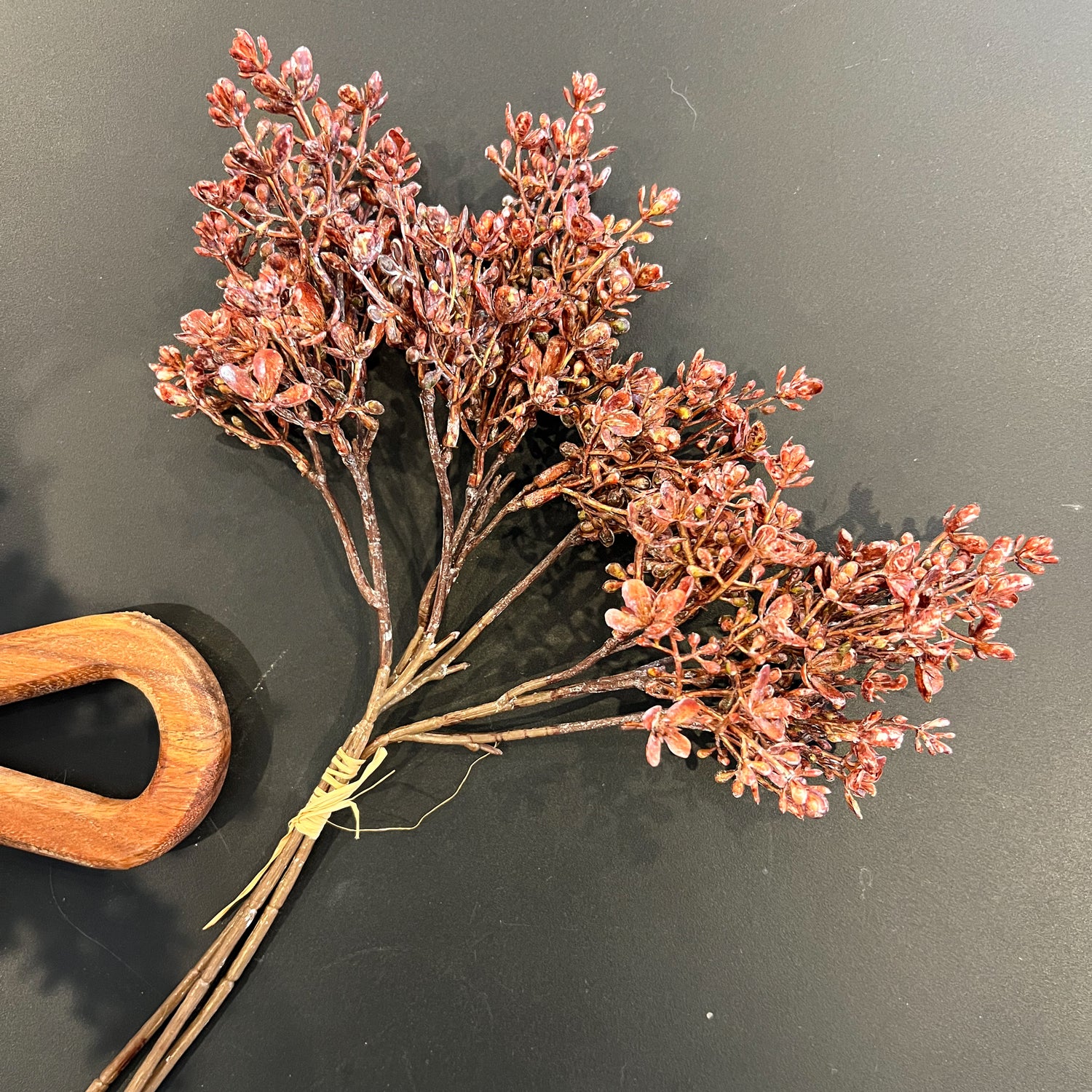 Bring the essence of fall into your home with our Rustwood Faux Floral Bunch. Featuring a soft powdered finish in rich brown and taupe hues, this bundle adds a rustic yet elegant touch to any arrangement. Perfect for creating cozy, seasonal vignettes, these florals look beautiful on their own or styled with complementary stems.