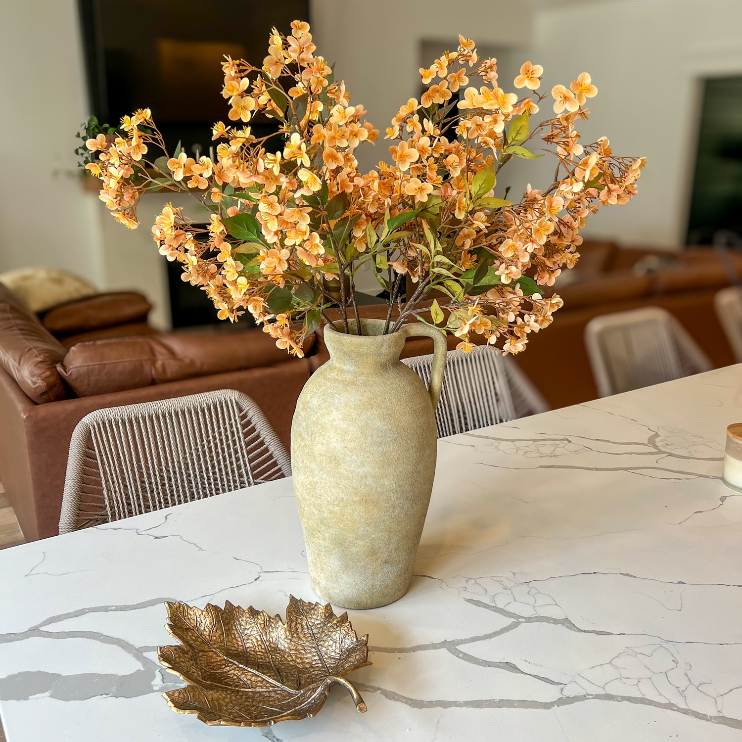 Bring timeless character to your space with the Elliot Textured Vase. Crafted from ceramic with a distressed, washed beige finish, this vase features a single handle and matte texture for a rustic yet refined look. Its tall, narrow silhouette makes it perfect for showcasing your favorite faux stems or standing beautifully on its own as an accent piece.
