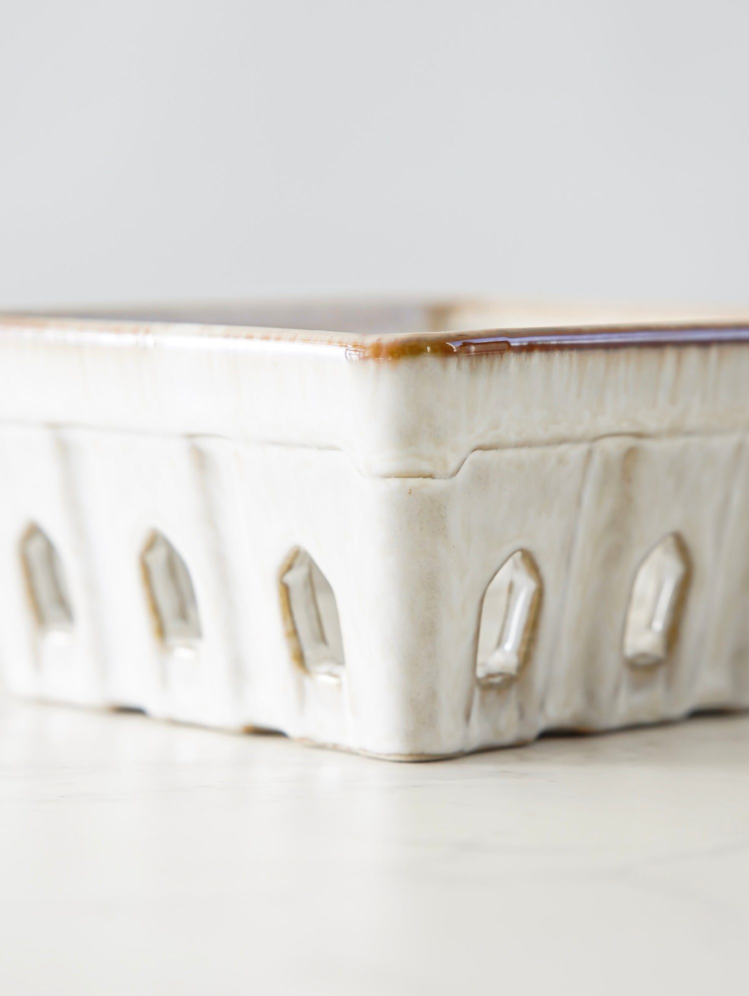 Bring a charming, market-inspired touch to your kitchen and home with our Eloise Berry Basket. Crafted from ceramic with a classic vented design, this piece is inspired by traditional berry cartons and blends everyday function with timeless style. Perfect for rinsing and serving fresh berries or simply styling on open shelves and countertops, it adds a cozy, collected feel wherever it’s placed. Both food-safe and decorative, it’s a versatile accent you’ll reach for again and again.
