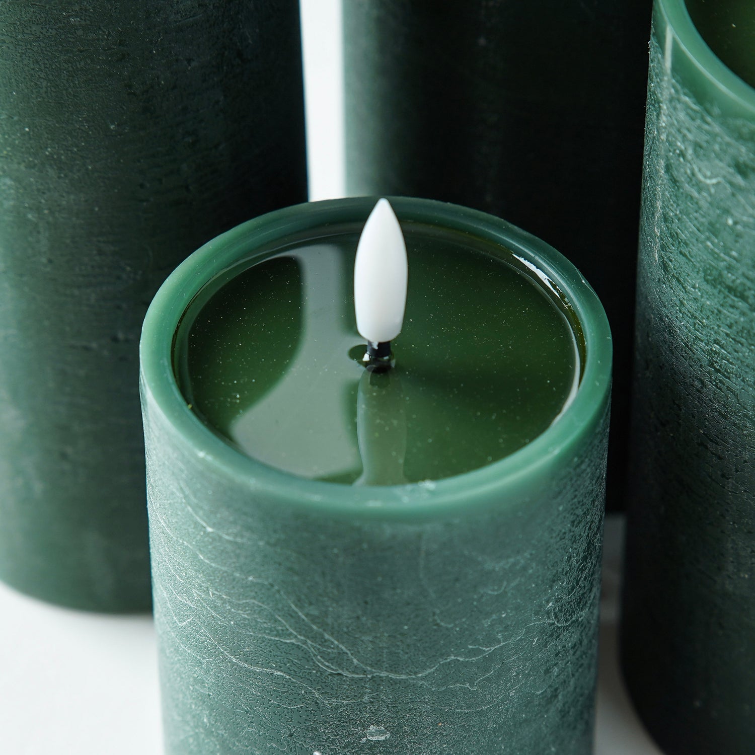 Bring rich seasonal elegance to your home with our Emerald Green LED Pillar Candle. Crafted with a deep emerald wax finish, this flameless candle glows with a realistic flicker and gently melting effect, offering the cozy ambiance of candlelight without the worry of an open flame. Perfect for holiday styling, it adds timeless charm to mantles, tabletops, and festive centerpieces. Whether displayed solo or grouped in varying heights, it brings a warm and sophisticated glow to any setting.