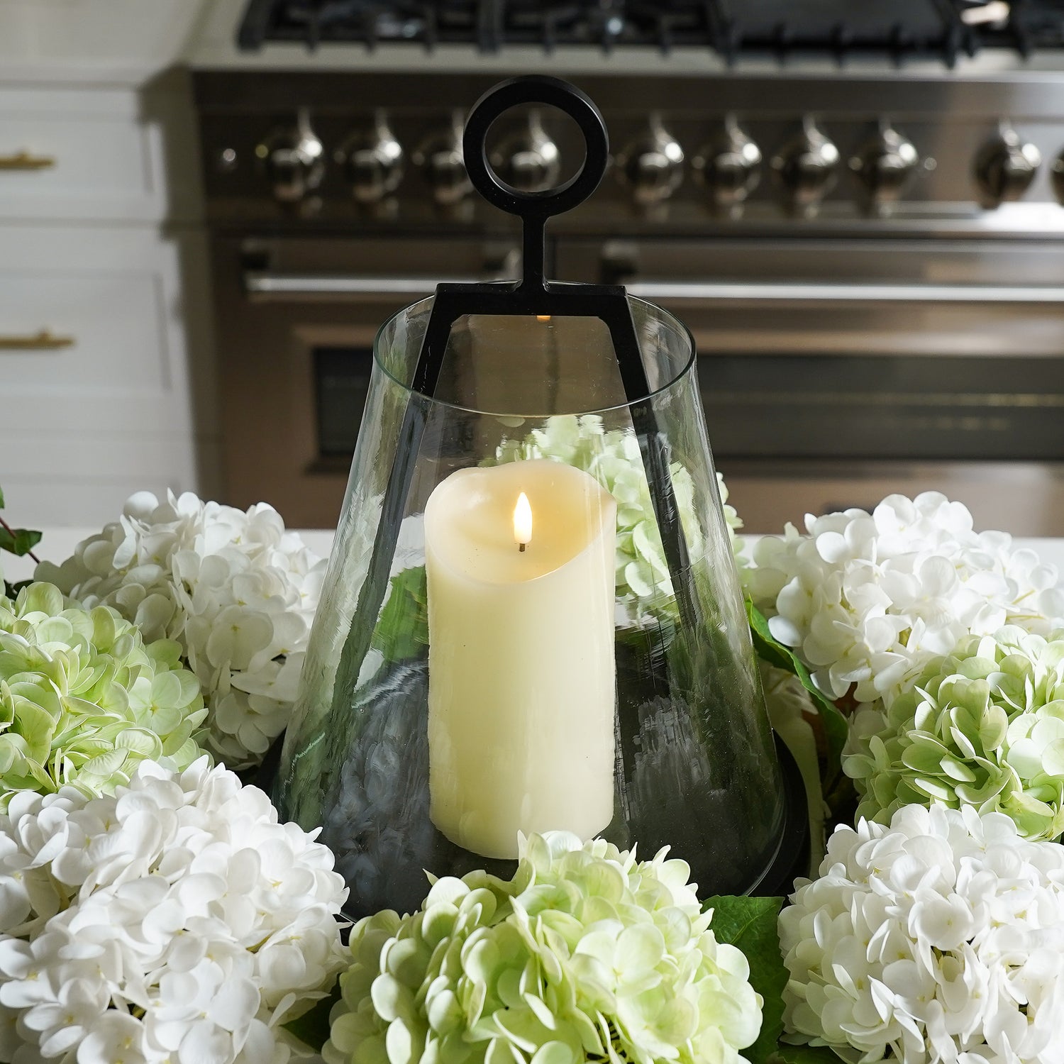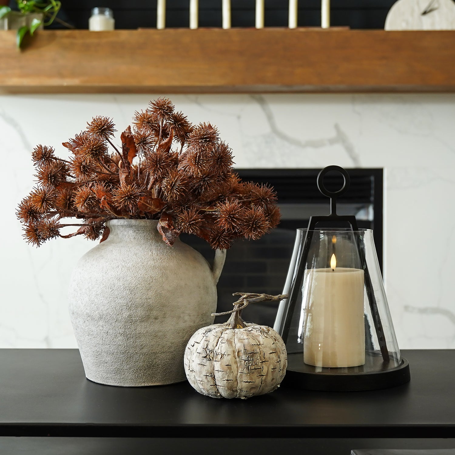Add a flameless candle for safe everyday ambiance, or create a seasonal centerpiece by placing florals or decorative fillers inside.