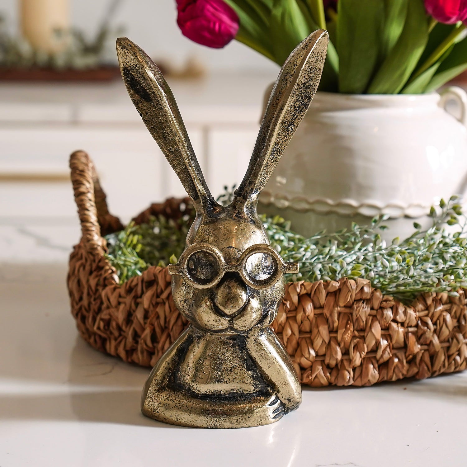 Add a touch of whimsy and charm to your space with our Studious Brass Rabbit — the gold-finished bunny sculpture that brings instant personality to your home. With sweet little spectacles and a scholarly pose, this accent is guaranteed to make you smile every time you walk by. Whether styled on a shelf, nestled into a floral arrangement, or paired with a candle ring, this clever critter is a scene-stealer.