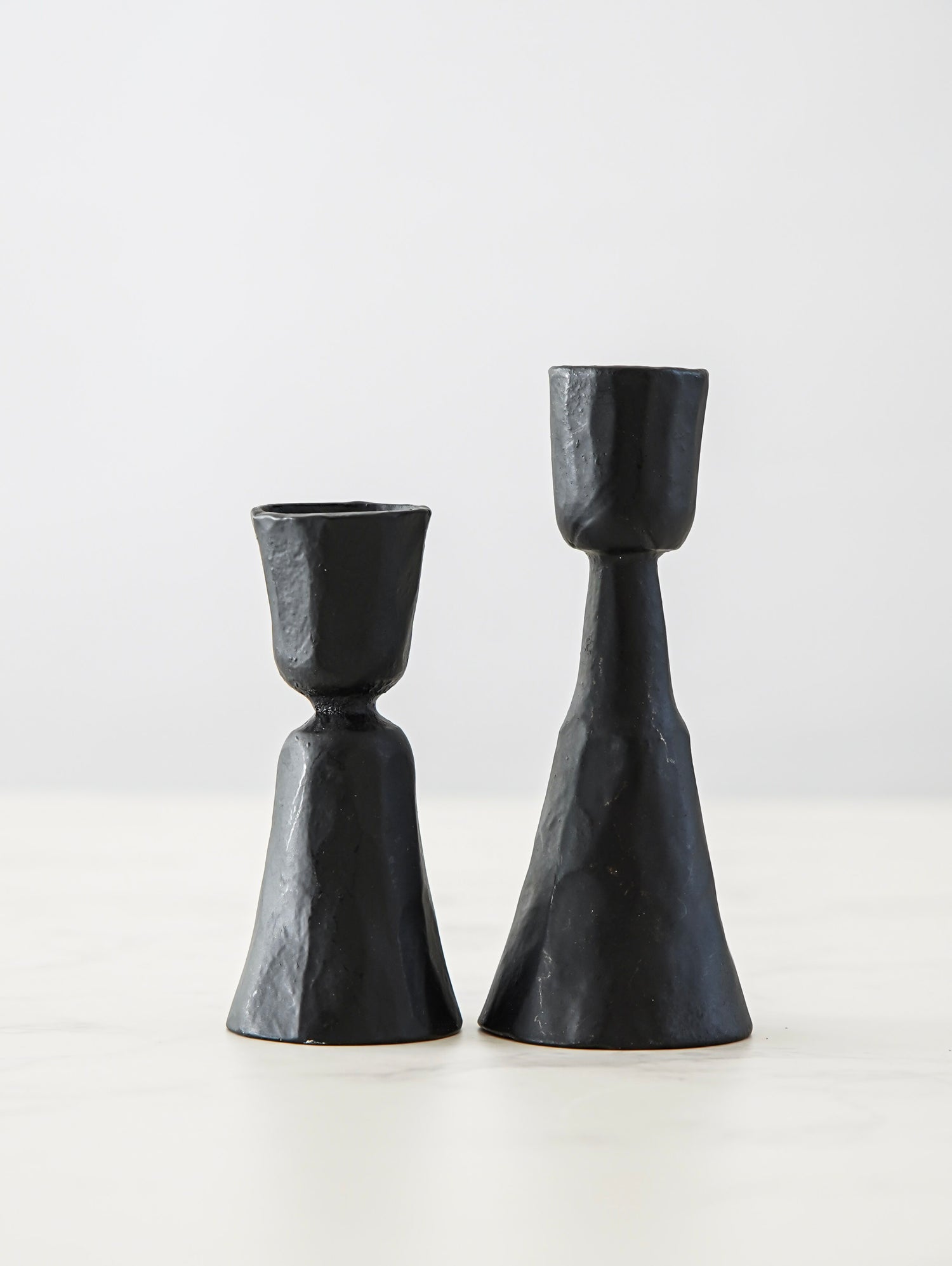 Add sleek, modern elegance to your décor with our Black Taper Candle Holder Set. Crafted from durable iron, each holder features a smooth black finish and clean, minimal silhouette that complements both contemporary and traditional styling. The set includes one small and one large holder, creating a balanced, layered look perfect for dining tables, consoles, or mantels. Timeless and versatile, they offer an elevated way to display your favorite taper candles year-round.