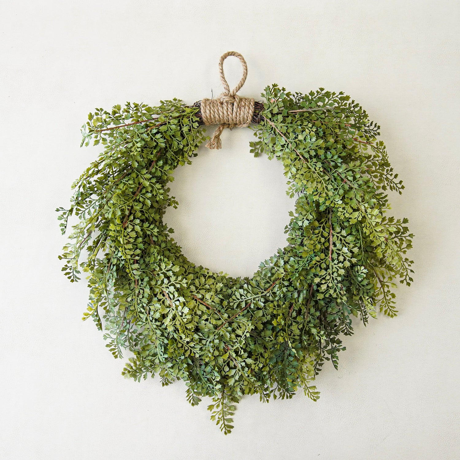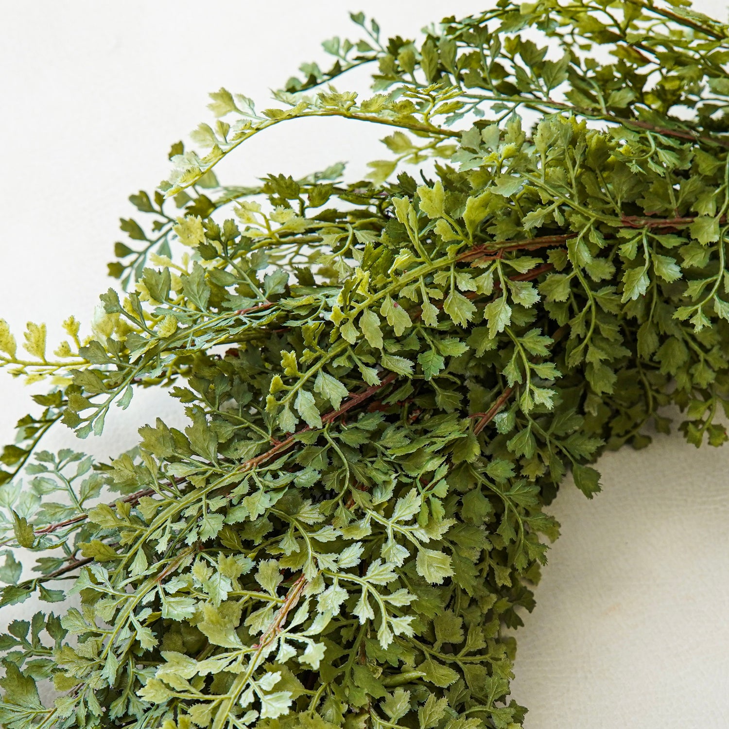 Lush, layered, and effortlessly timeless, the Amara Hanging Fern Wreath brings a fresh, natural look to any space. Full fern fronds in soft, tonal greens create depth and movement, while the grapevine backing adds structure and warmth. Finished with a jute hanger, this wreath feels relaxed yet refined, perfect for everyday styling or seasonal transitions.