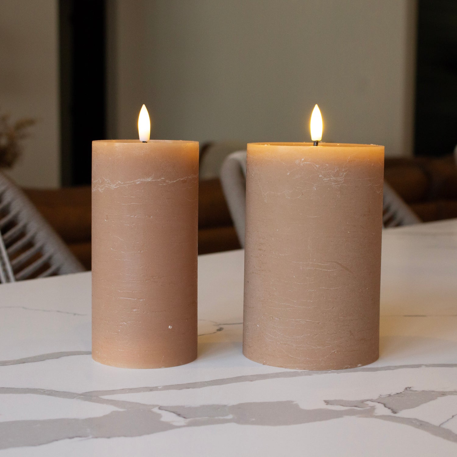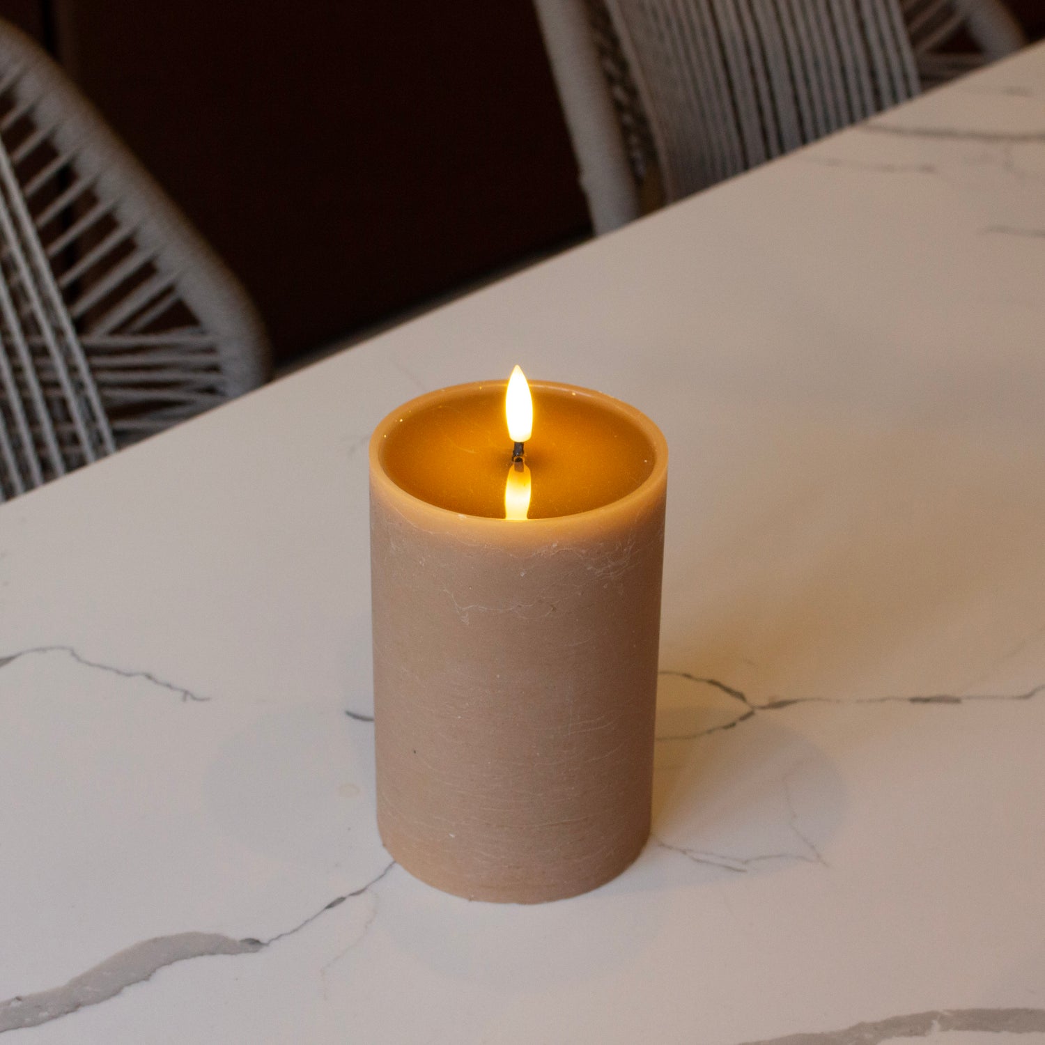 Bring a warm, inviting glow to your home with our Taupe Flameless Candle. Designed with a melted wax top and textured finish, this realistic LED candle offers the charm of candlelight without the mess or worry. Crafted from real wax, it’s perfect for everyday use, seasonal styling, or creating cozy ambiance inside hurricanes and lanterns.