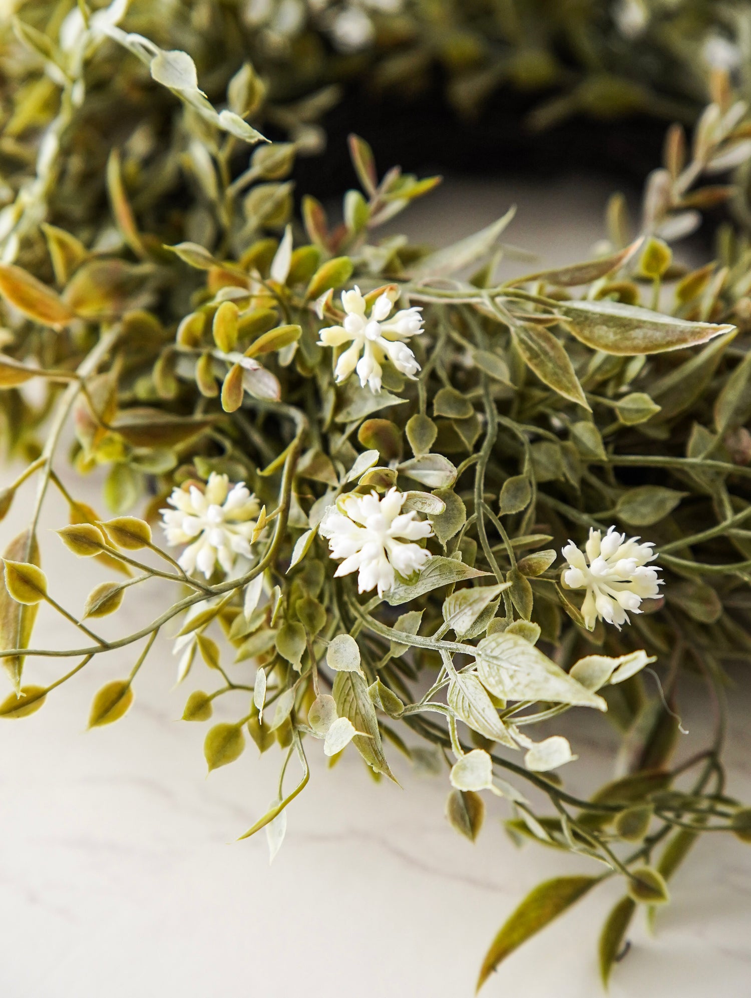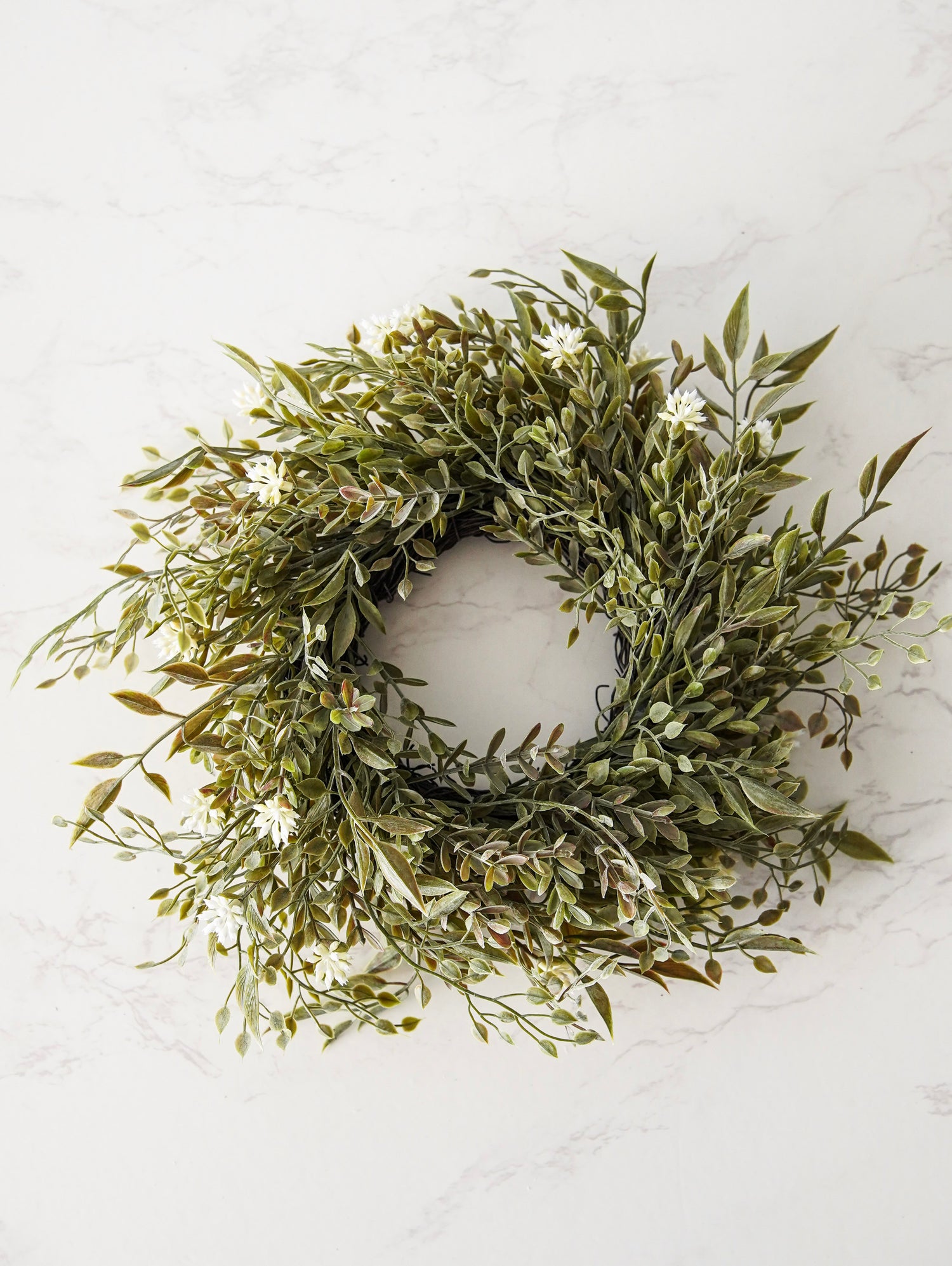 The Lyra Buds Candle Ring brings soft texture and fresh greenery to your home with its layered budding stems and natural grapevine base. Designed with a lightly powdered finish, this piece offers a freshly gathered look that feels calm, airy, and timeless. Its versatile size makes it perfect for styling around candles, vases, or decorative accents throughout the seasons. Effortless and refined, it adds a gentle botanical touch to shelves, mantels, and tabletop displays.