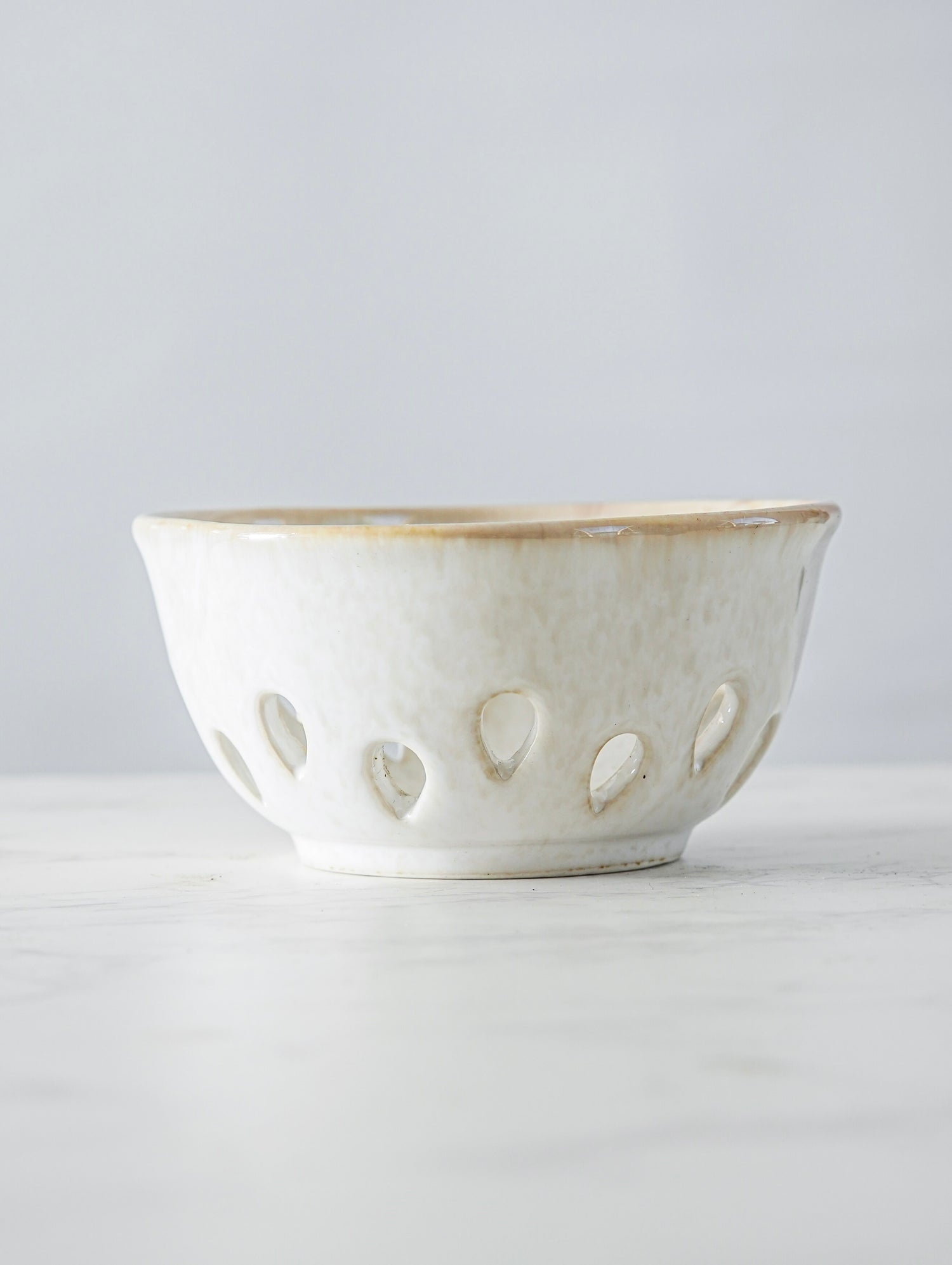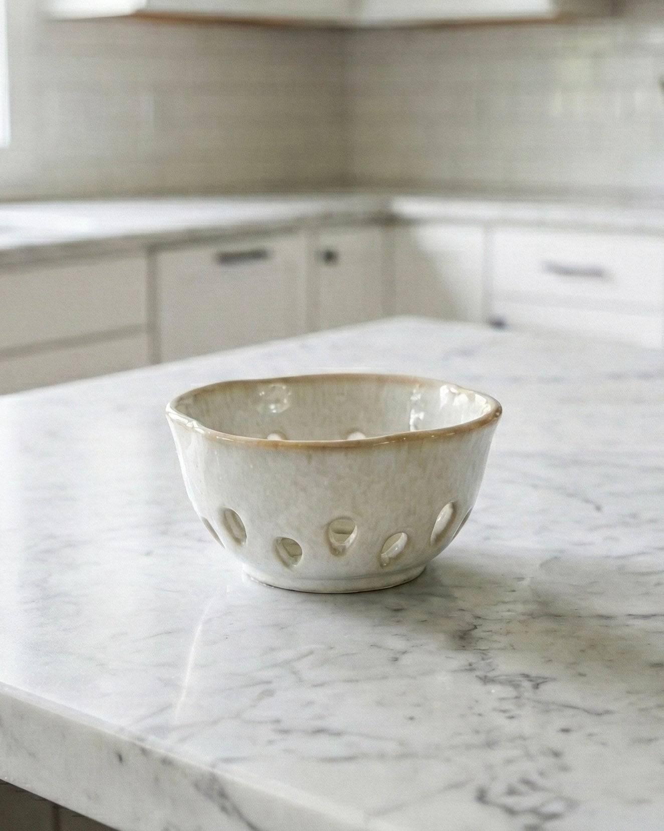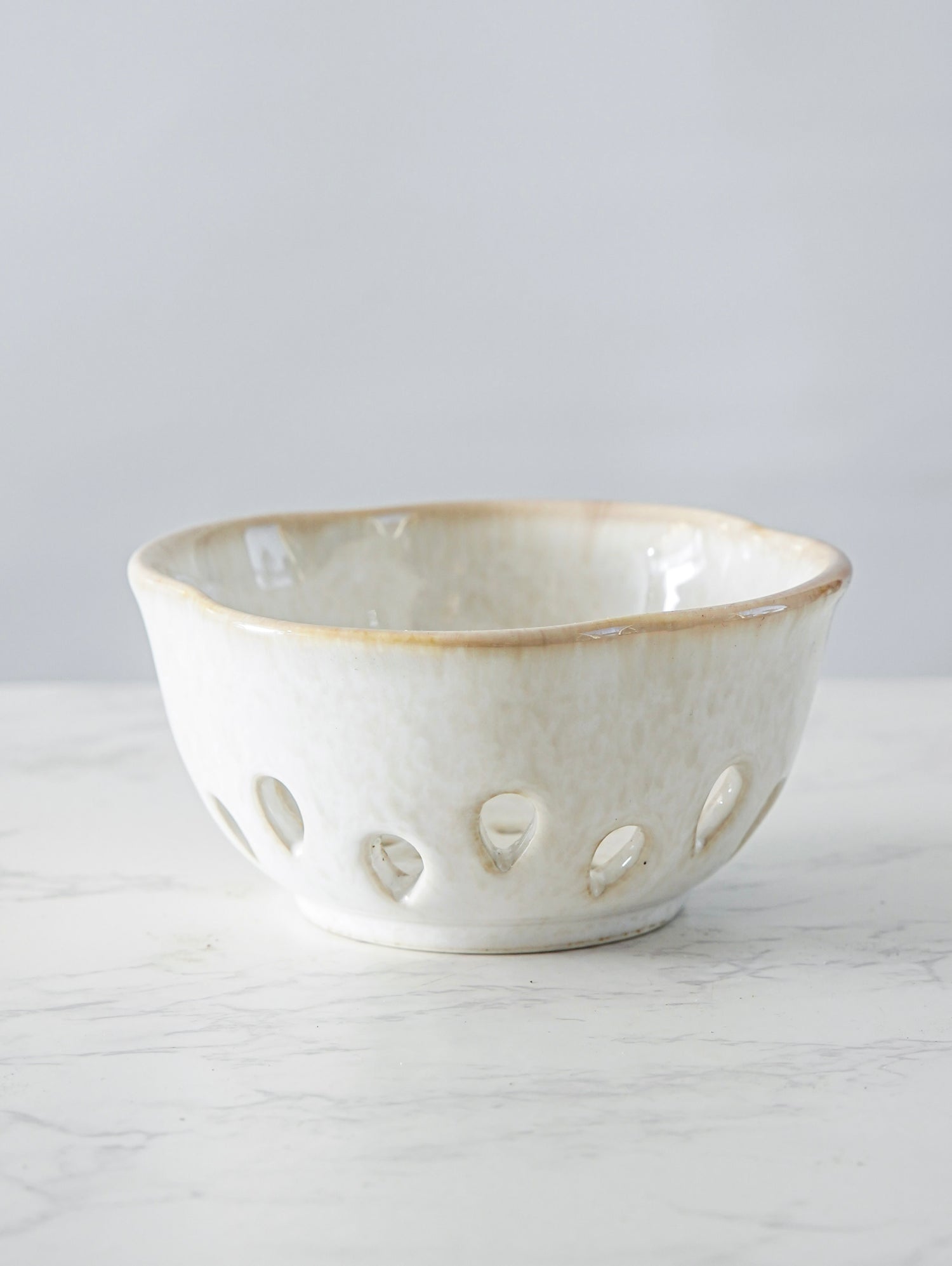 A sweet and functional addition to your kitchen, the Eloise Mini Berry Basket brings a fresh, market-style touch to everyday routines. Crafted from ceramic, its classic vented design is perfect for rinsing, serving, and storing your favorite berries or small produce. The petite size makes it ideal for individual servings or charming countertop display. Simple, timeless, and endlessly useful - it’s a piece that elevates even the smallest moments.