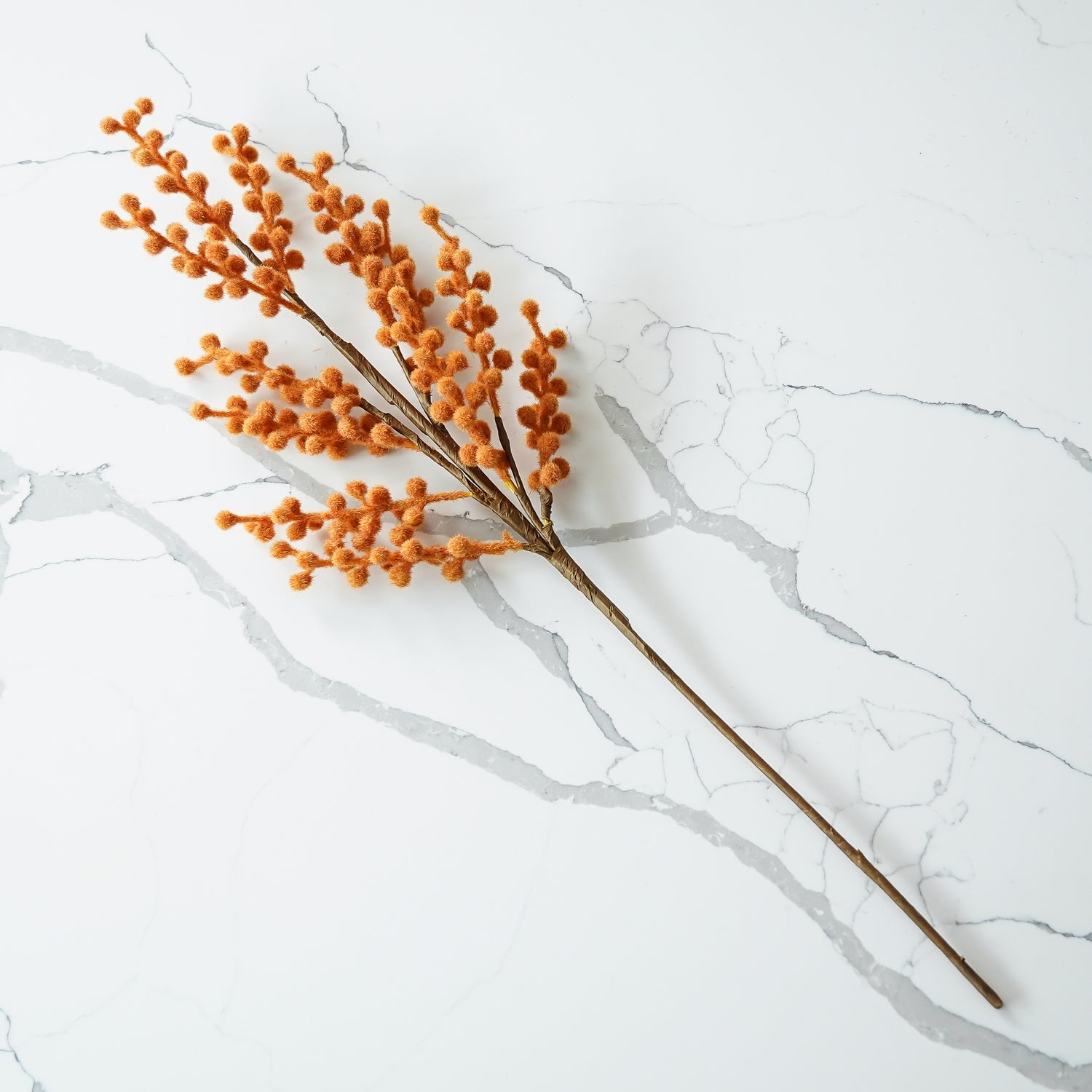 Bring texture and warmth to your autumn displays with the Orange Flocked Berry Stem. Featuring delicately flocked berries in a rich orange hue, this faux stem adds refined detail to wreaths, centerpieces, and seasonal arrangements.