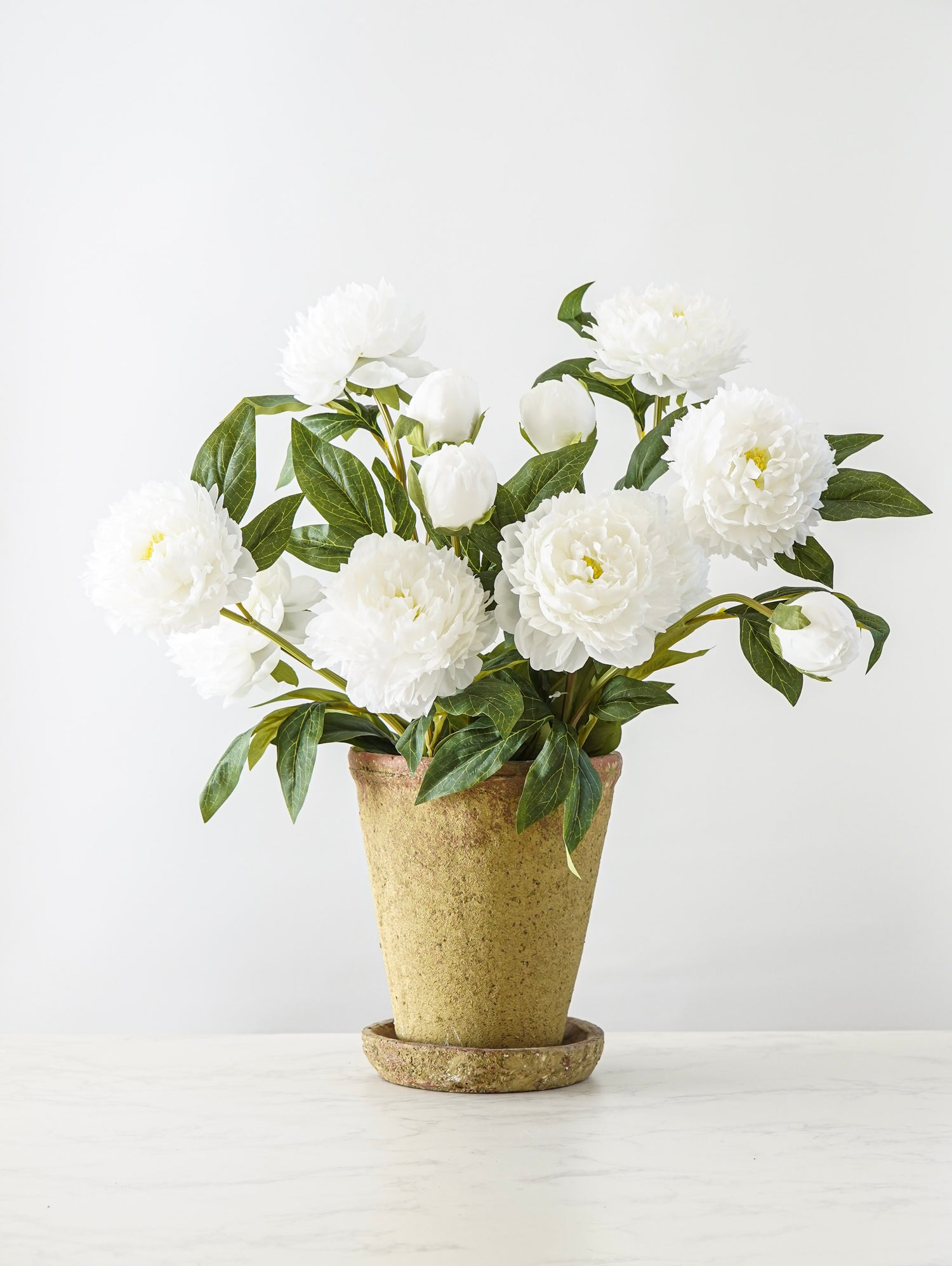 Brighten your space with the timeless beauty of our Peony Blossom Stem. Designed with soft white faux petals, this stem captures the lush, romantic look of fresh peonies - without the upkeep. With full blooms and a delicate bud, it brings graceful movement and a cheerful elegance to vases, arrangements, and styled surfaces. A classic floral accent that feels fresh, light, and beautifully refined year-round.