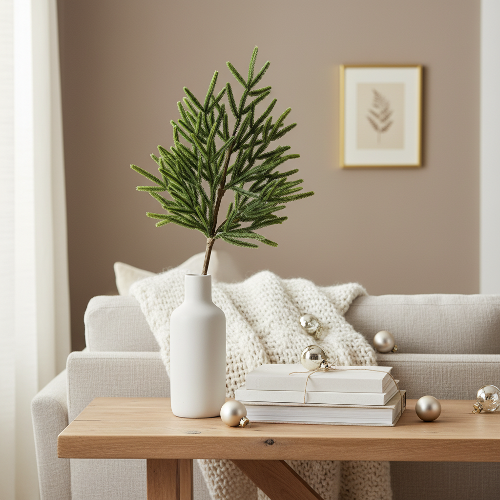 Bring the serene beauty of winter greenery into your home with our Whispering Pine Branch. Crafted with lifelike detail and a real touch finish, this branch captures the soft texture and gentle movement of natural pine. Its airy silhouette and natural green tone make it a versatile accent for vases, centerpieces, or holiday arrangements - adding depth and a timeless, woodland feel to your seasonal décor.