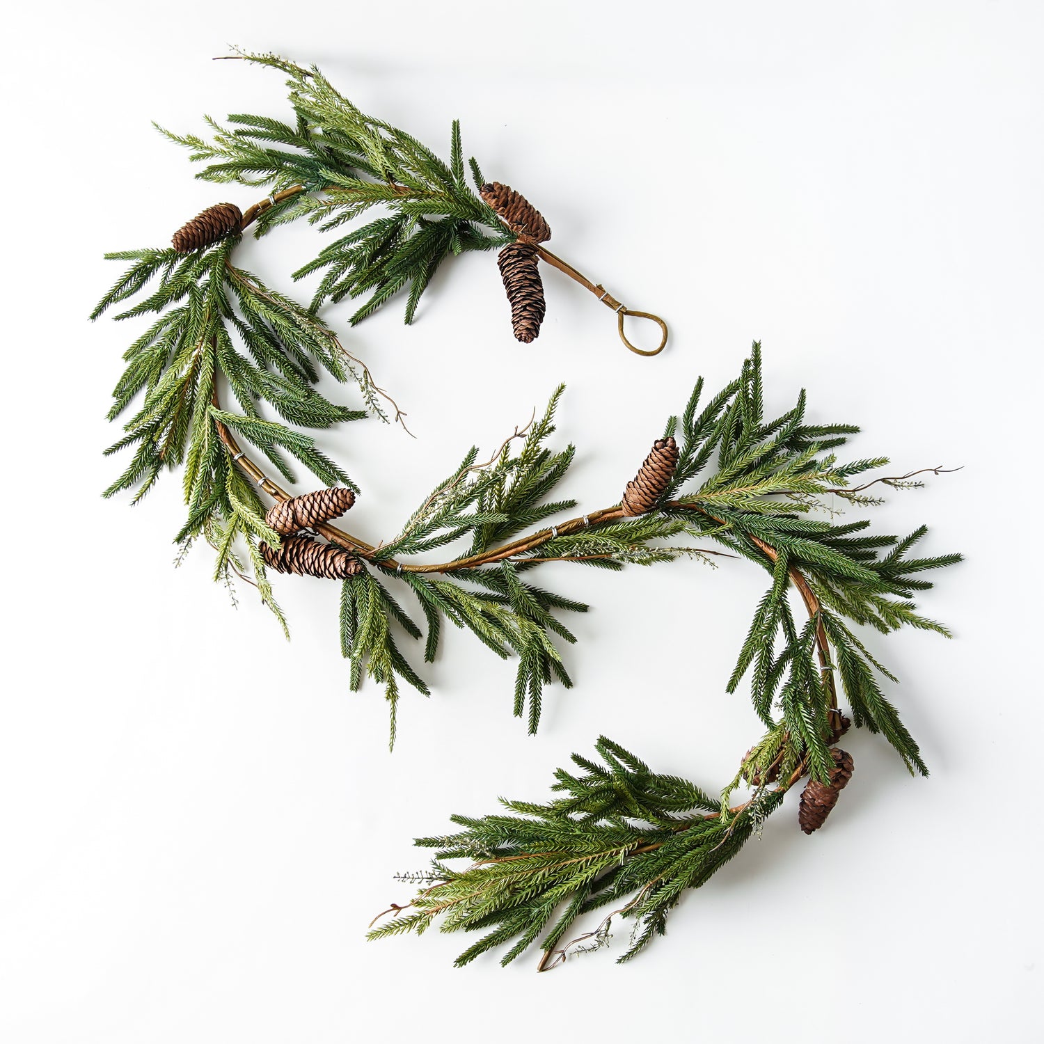 Bring nature’s charm indoors with our Evergreen Pine Garland. Accented with realistic pine sprigs, scattered pinecones, and delicate mini green berries, this 6-foot garland adds warmth and texture to mantels, staircases, or holiday tablescapes. Its flexible design makes styling effortless, while the natural tones pair perfectly with any winter or holiday décor.