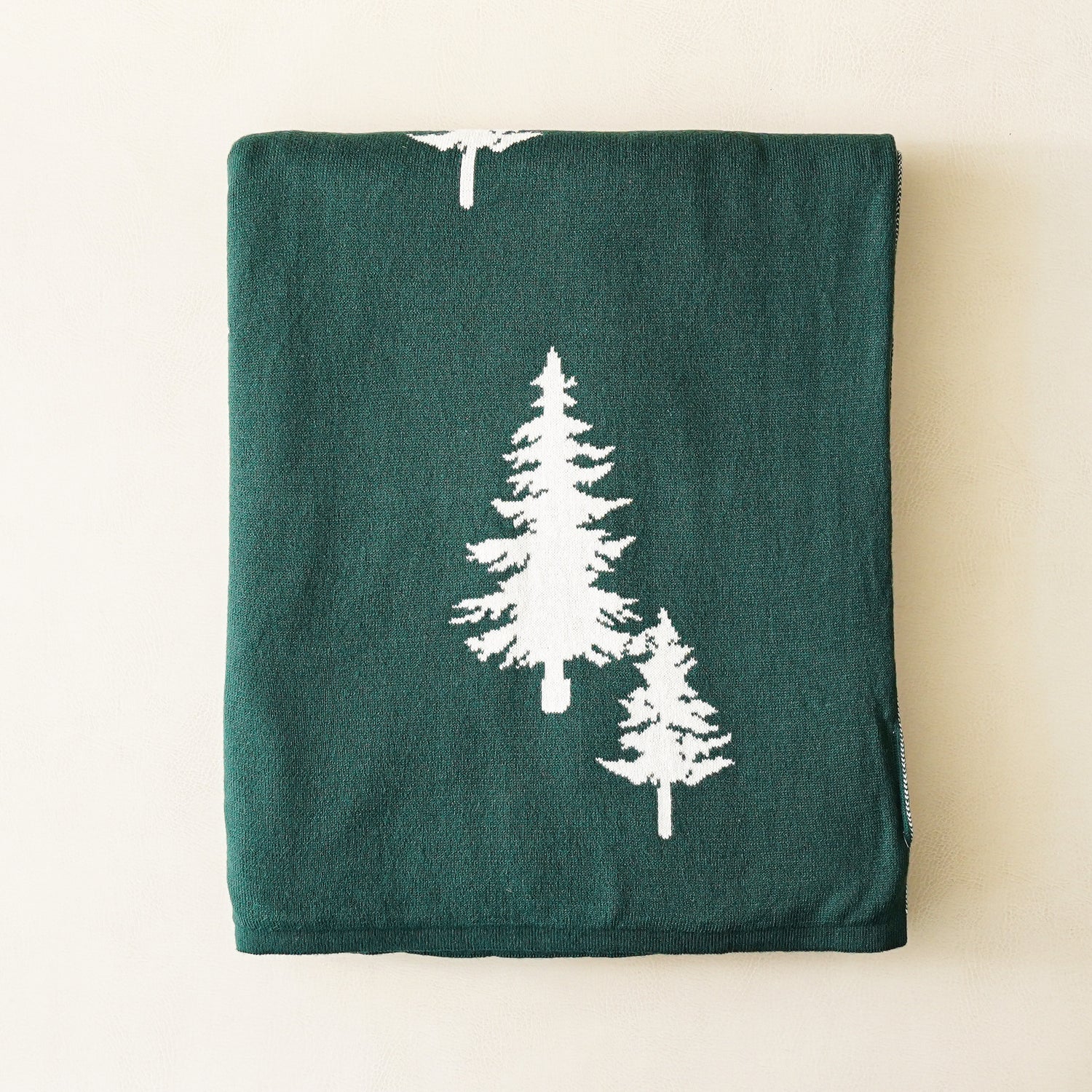 Evergreen Pine Tree Cotton Throw Blanket | Green & White