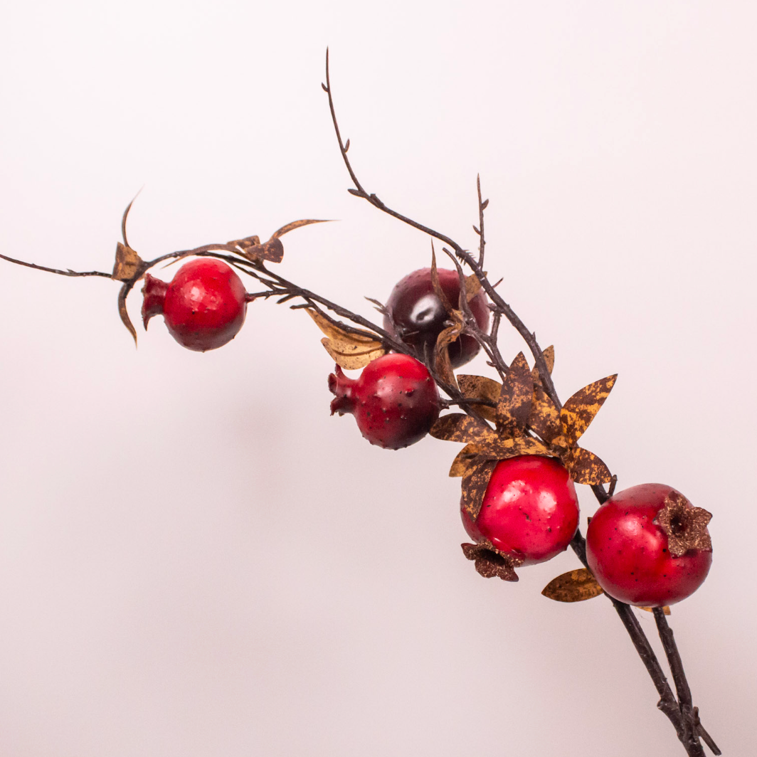Add rich color and organic texture to your seasonal arrangements with our Faux Pomegranate Spray. Standing 31" tall, this lifelike stem features detailed pomegranate accents on wired branches, making it easy to shape and style. Crafted from foam and plastic, it’s perfect for adding height and a natural pop of color to vases, centerpieces, and holiday greenery.