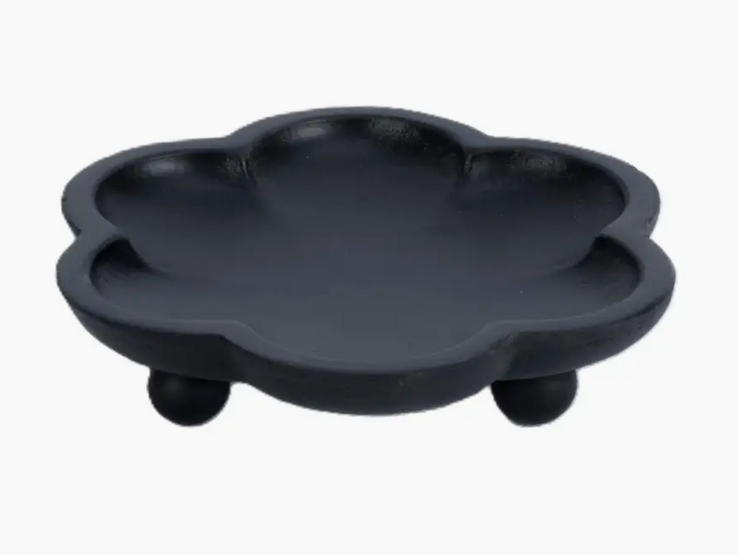 The Riley Black Wood Tray offers a modern take on functional décor with its sculptural, flower-inspired silhouette and smooth rounded edges. Crafted from wood with a sleek black finish, this compact tray adds visual interest while maintaining a clean, refined presence. Its versatile size makes it ideal for holding small décor accents, organizing everyday essentials, or serving as a subtle statement piece. Perfect for contemporary, minimalist, or eclectic spaces, this tray brings intentional style to any surface.