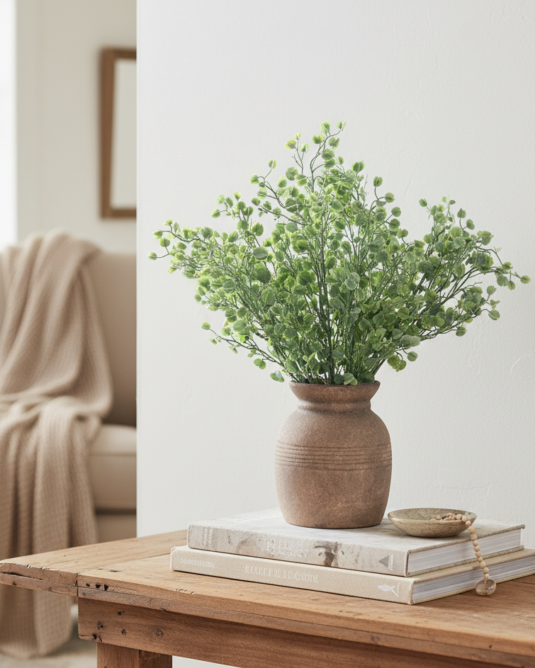 Style a few stems together in a ceramic vase for a soft, calming greenery moment on your console or kitchen counter.