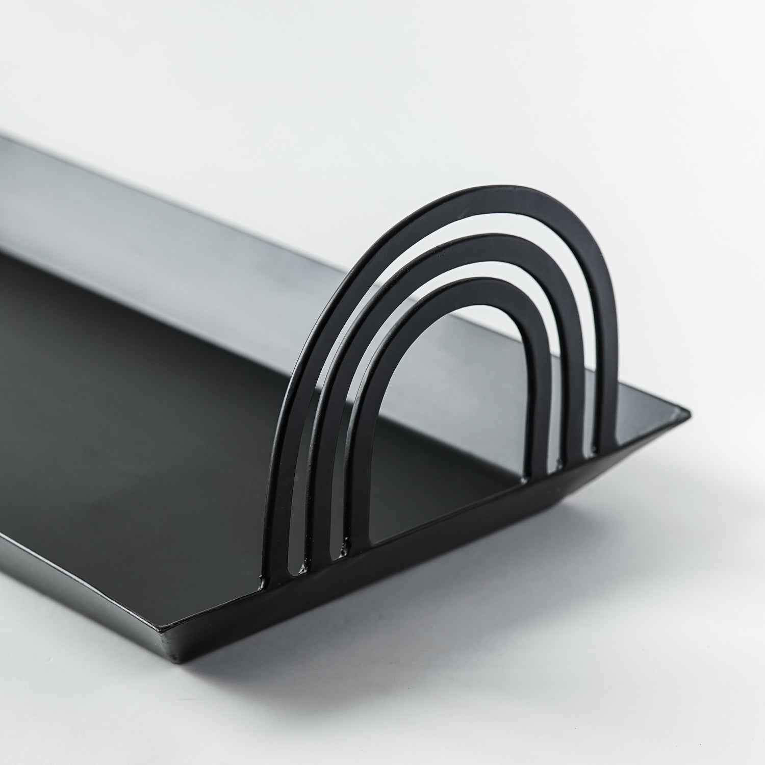 Bring understated elegance and modern functionality to your home with our Shiloh Black Tray. Crafted from durable metal with a refined matte black finish, this tray features clean lines and a sleek silhouette that works beautifully in any room. Its elongated shape is ideal for displaying candles, decorative accents, or organizing everyday essentials with a polished, minimalist touch.