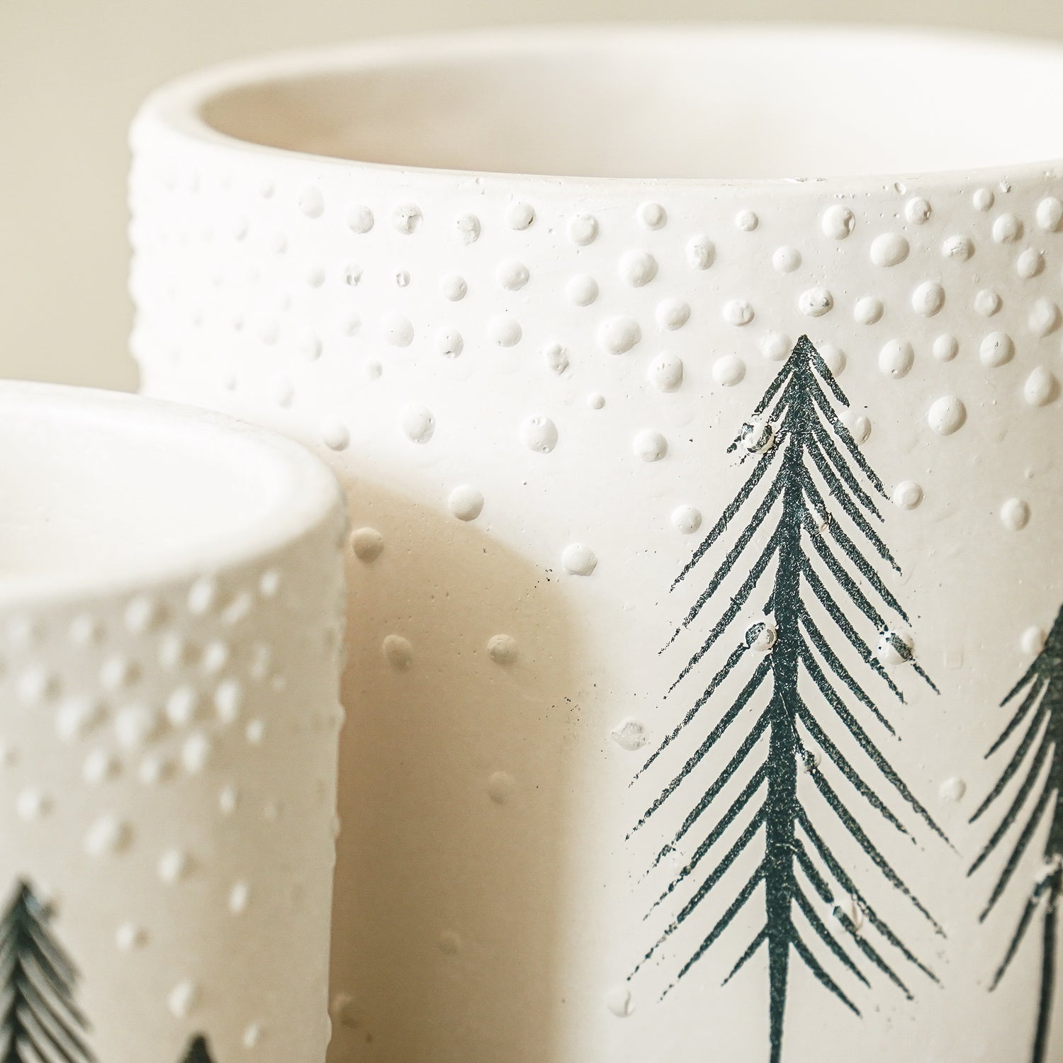 Bring a touch of winter charm to your home with the Painted Forest Tree Planter. Designed with a subtle forest tree motif and a snowy textured finish, this planter adds a cozy seasonal accent that transitions beautifully from the holidays through winter. Perfect for showcasing greenery, florals, or decorative stems, it’s a versatile piece that blends modern simplicity with festive style.