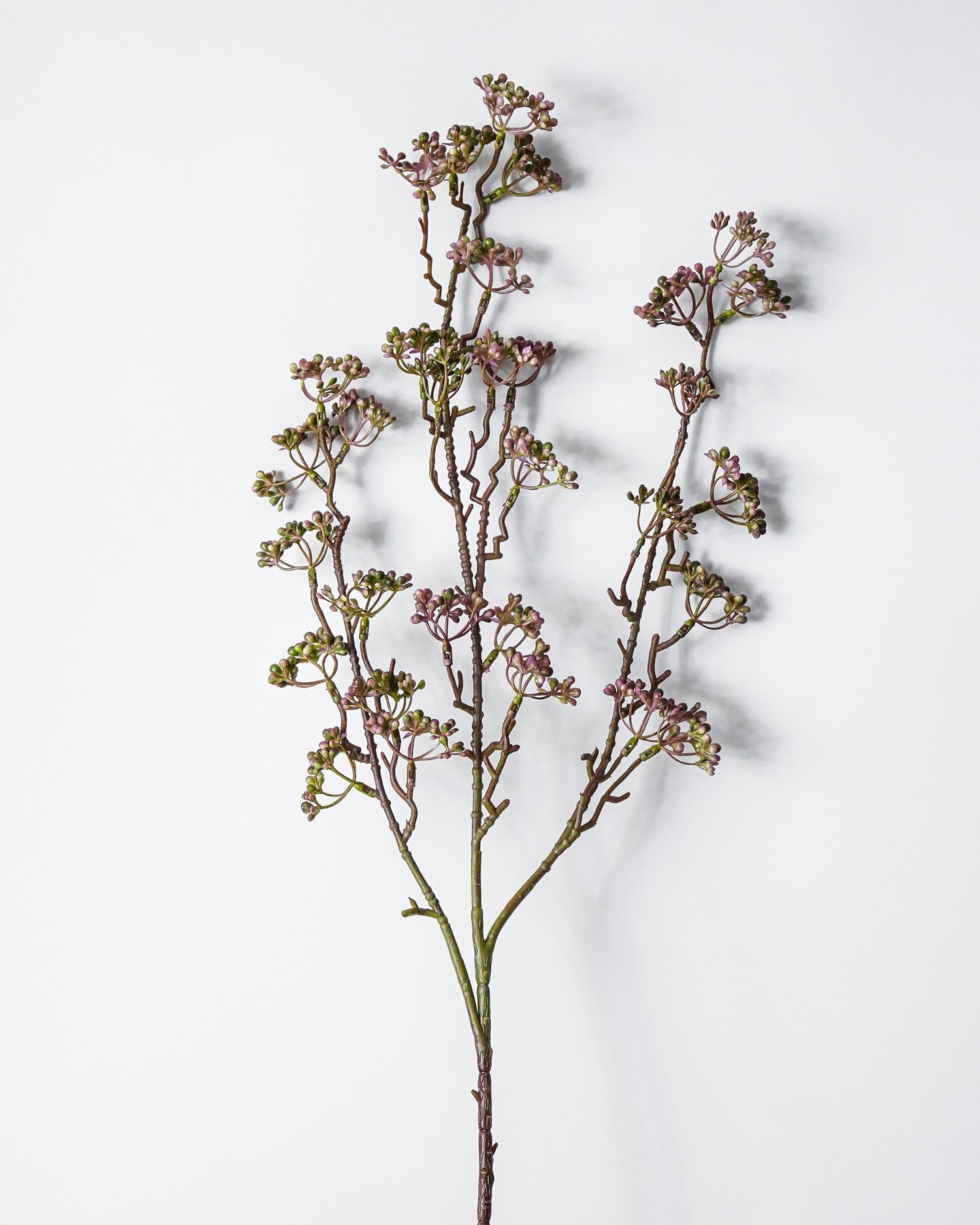 The Gathered Berry Branch brings height, texture, and a softly natural feel to your floral styling with its delicate berry clusters and airy silhouette. Designed to mimic freshly gathered branches, this faux stem adds depth and movement while maintaining a calm, refined presence. Its generous height makes it ideal for taller vases and statement arrangements, creating a full, layered look with ease. Timeless and versatile, it offers a beautiful way to add seasonal texture throughout the year.
