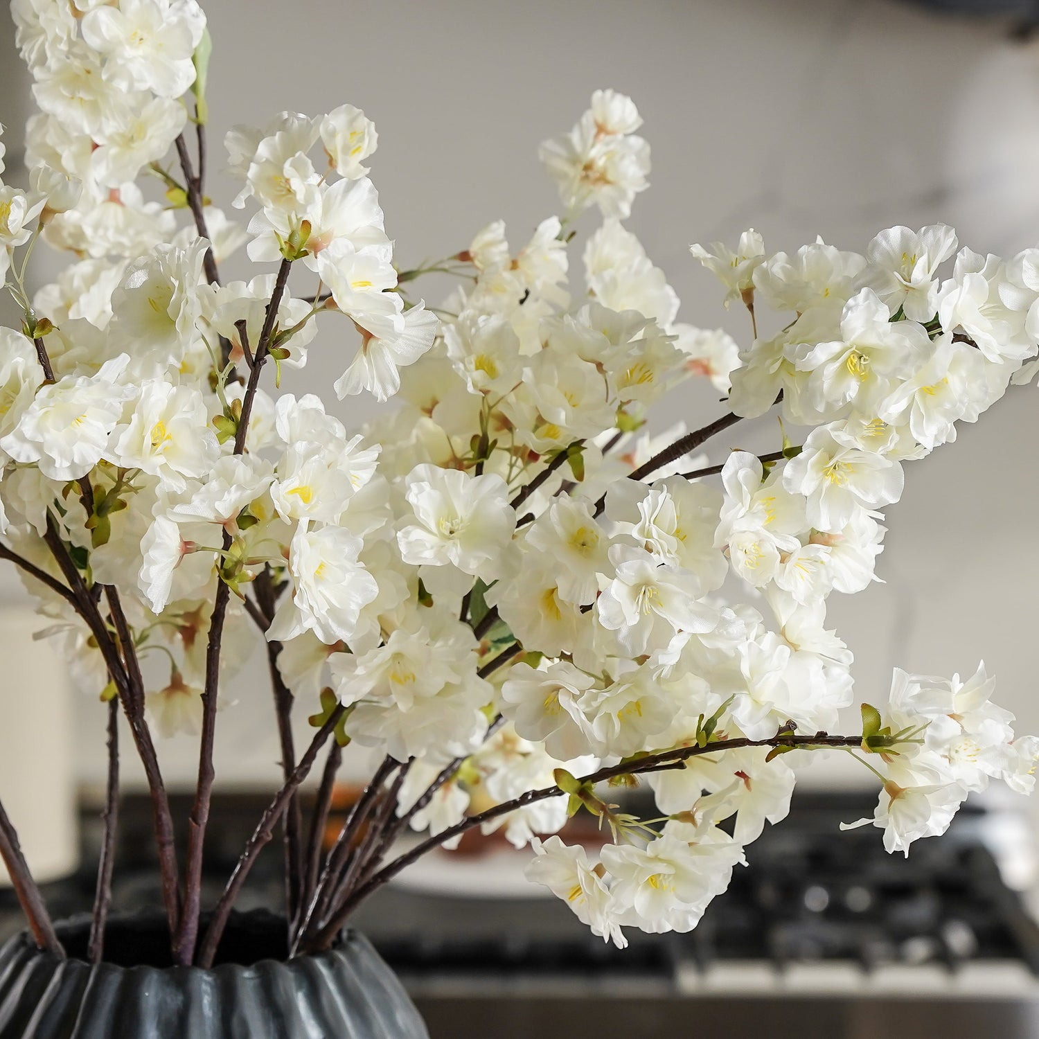 Let the stems breathe. Fewer branches styled with intention create a more elevated, editorial look than a tightly packed arrangement.