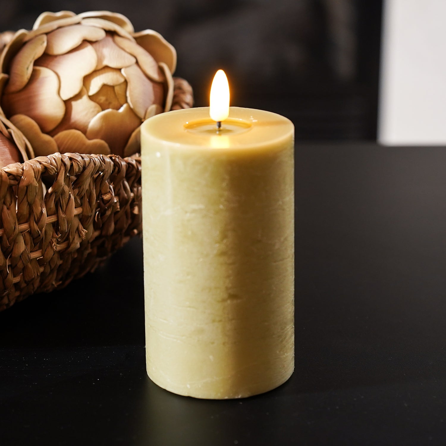 Single Wick Textured LED Pillar | Sage