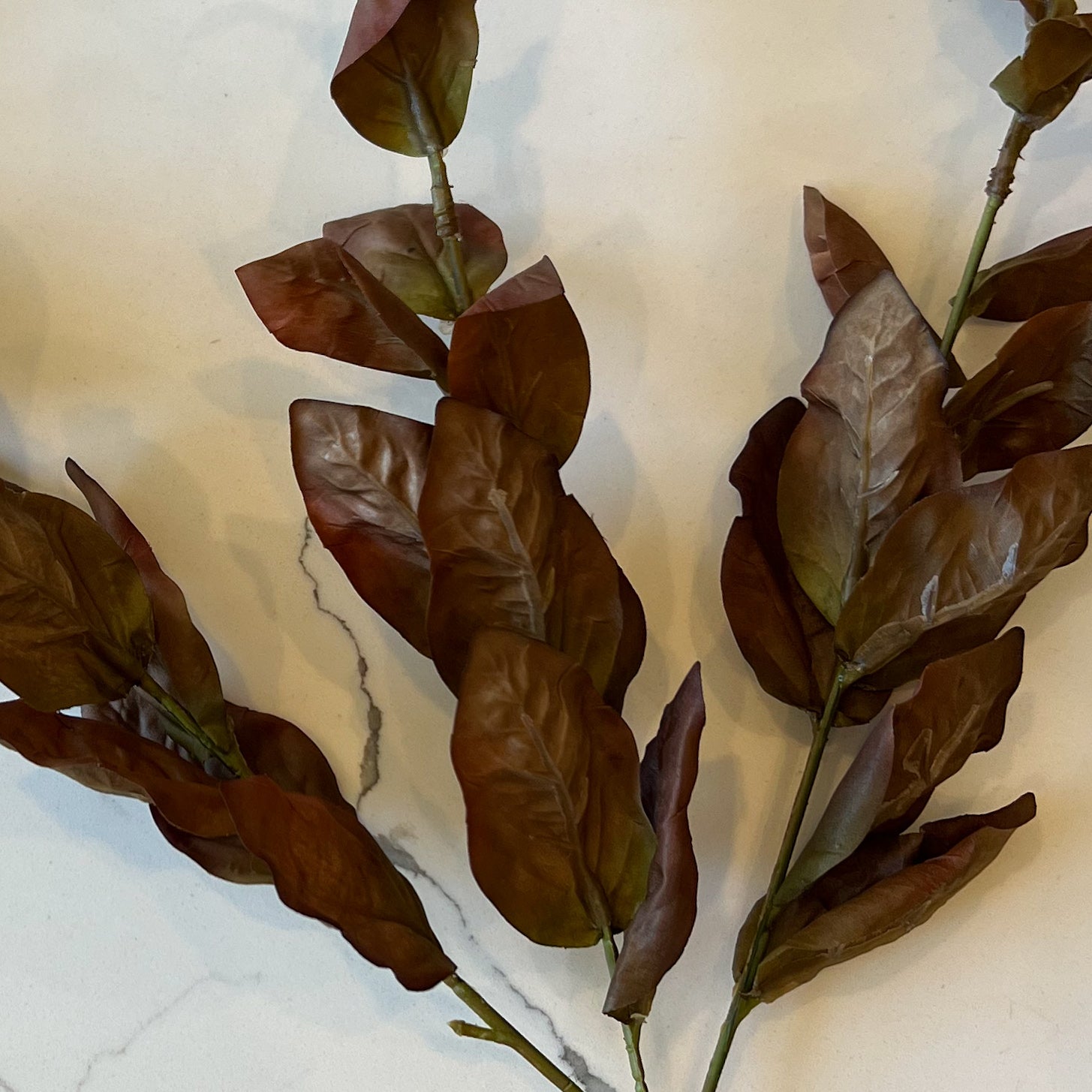 Two-tone olive green and brown leaves