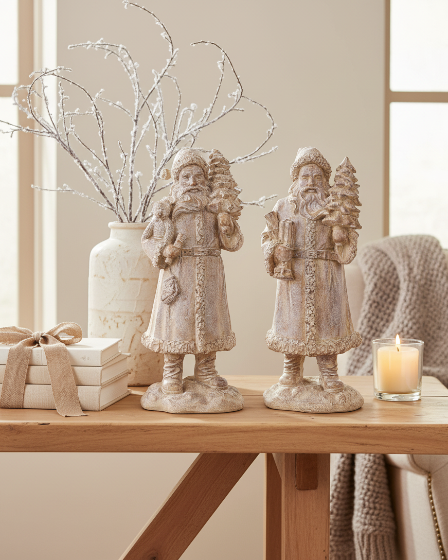 Display the pair on a mantel, console, or shelf alongside greenery and candles for a warm, nostalgic holiday vignette.