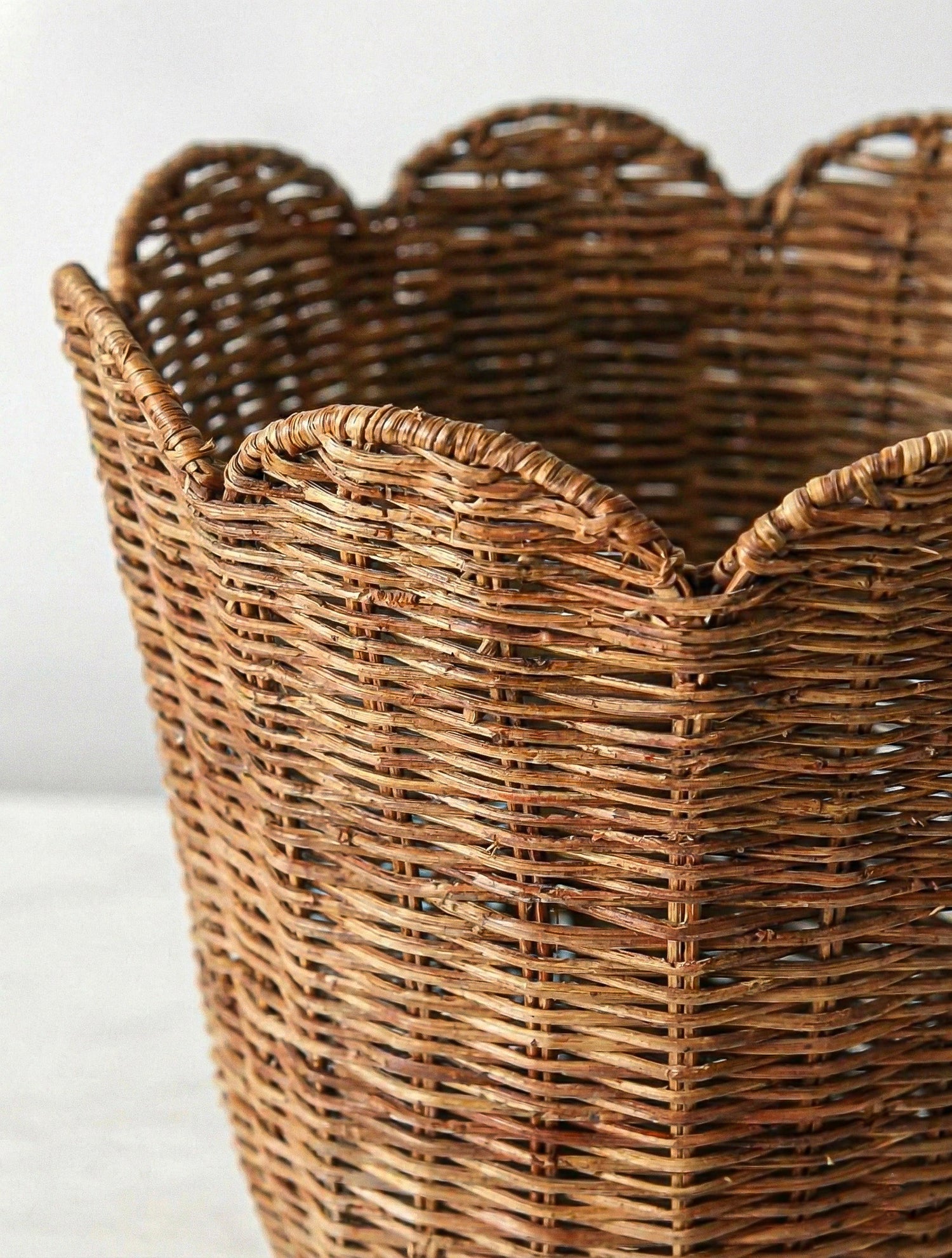 Woven Rattan Scallop Basket